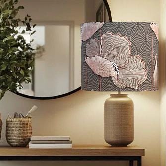 Add a touch of elegance and floral charm to your home decor with this Handmade Art Deco Lampshade featuring a stunning pink poppies design. Perfect for illuminating your dining room, bedroom, or living space, this decorative lampshade effortlessly combines vintage inspiration with modern artistry. Crafted with care, each piece showcases intricate floral details set against an art deco background, creating a gorgeous focal point that enhances any room's style.