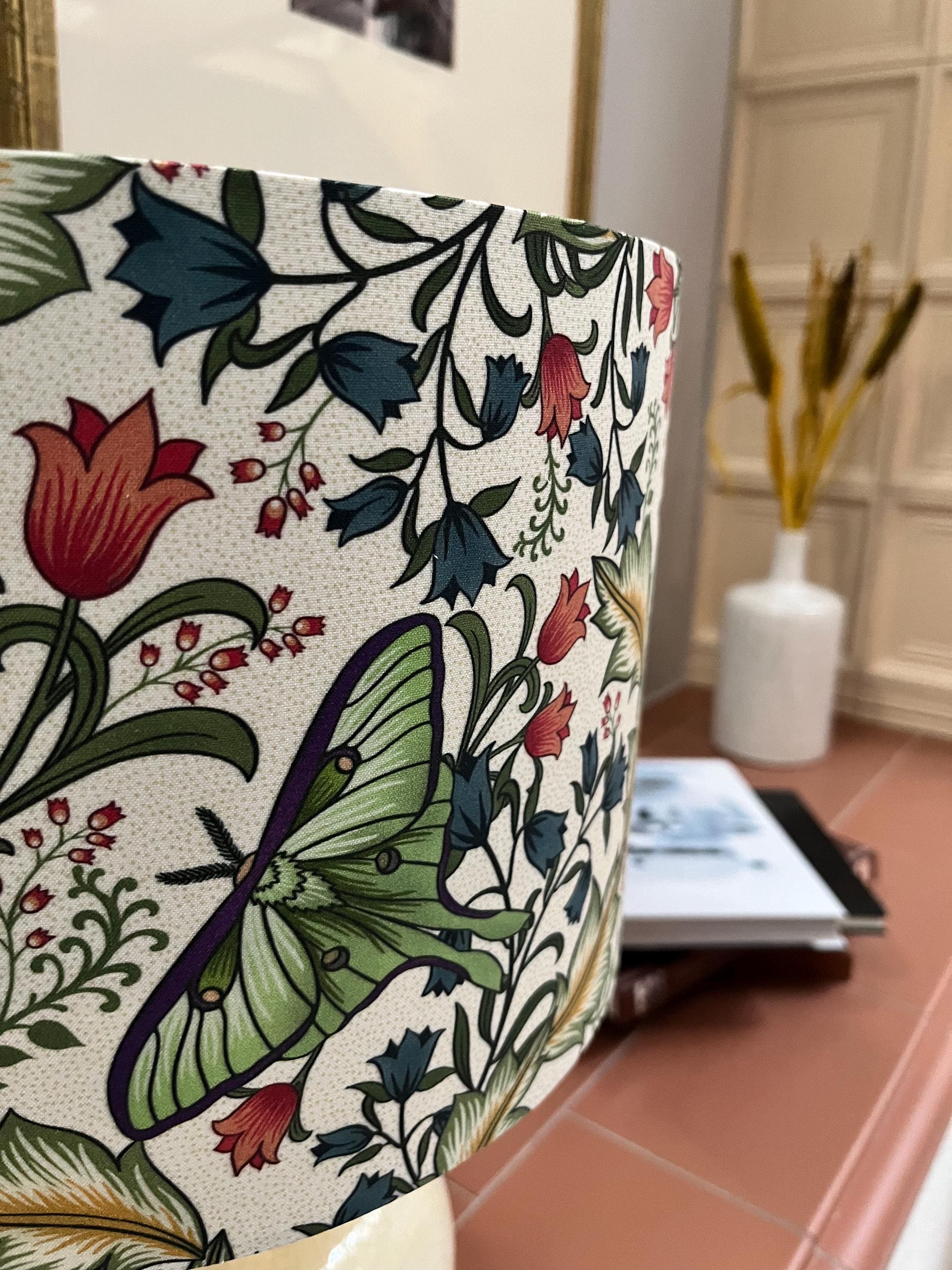 Bring a touch of enchantment to your home with this romantic lampshade featuring a charming floral and butterfly design. Perfect for creating a whimsical and dreamy ambiance, this decorative lampshade is expertly handcrafted with love, showcasing intricate details that highlight nature’s beauty. Its vintage-inspired fabric design combines vibrant flowers and delicate butterflies, making it an ideal accent for bedrooms, dining rooms, or living spaces that need a fresh, artistic touch.