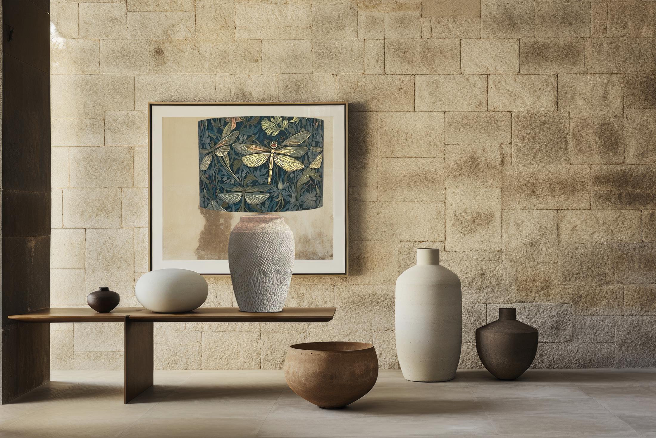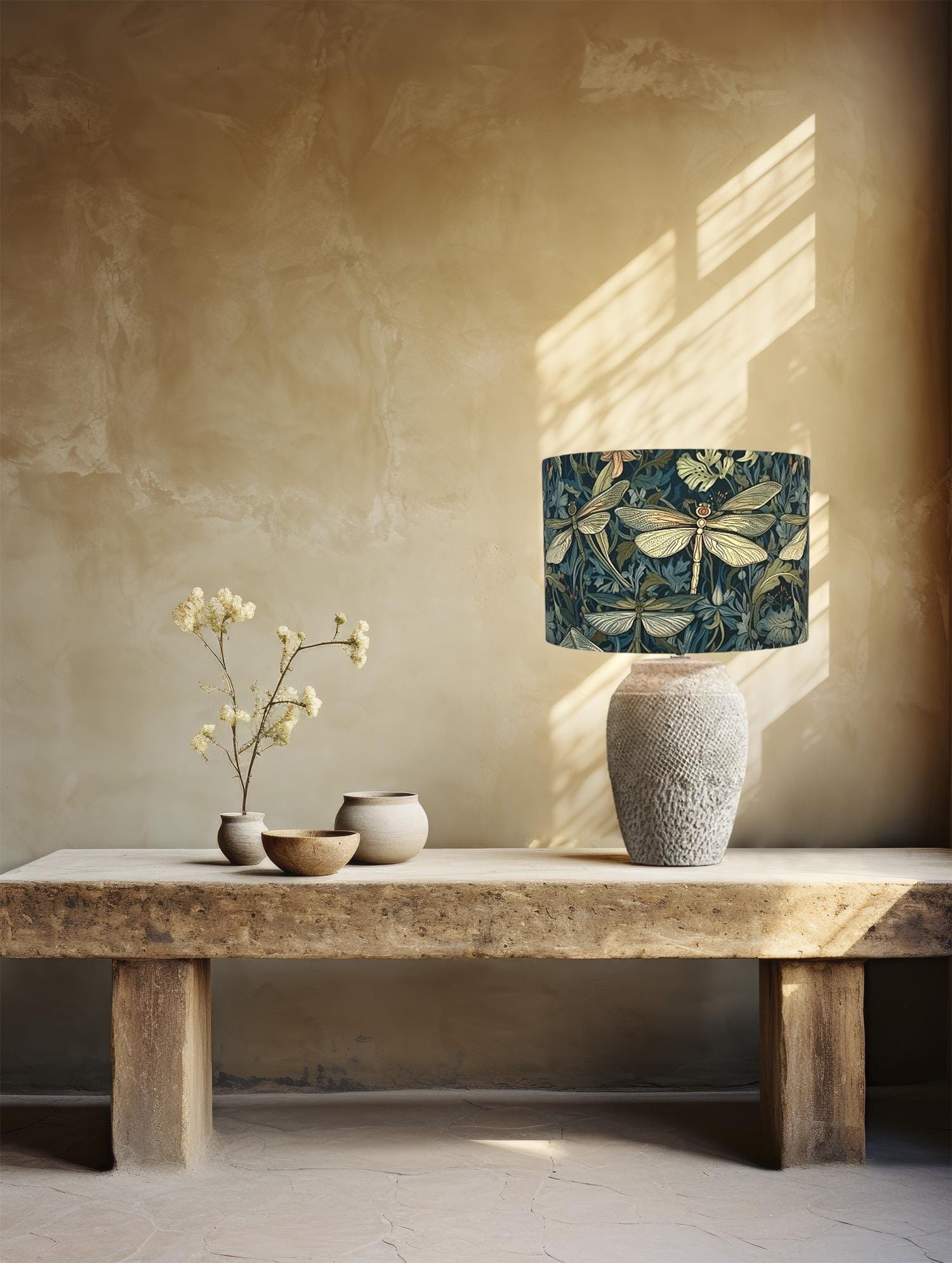 Illuminate your space with this stunning lampshade featuring an exquisite Art Nouveau design inspired by William Morris. Adorned with a beautiful flight of green and yellow dragonflies, this handcrafted piece will add a touch of elegance and nature's charm to your home decor. Perfect for vintage enthusiasts and nature lovers alike! Create a statement in your living room with this handmade green and yellow dragonfly lampshade, inspired by William Morris and the Art Nouveau era. Perfect for pendant lighting or table lamps in boho, nature-inspired décor.