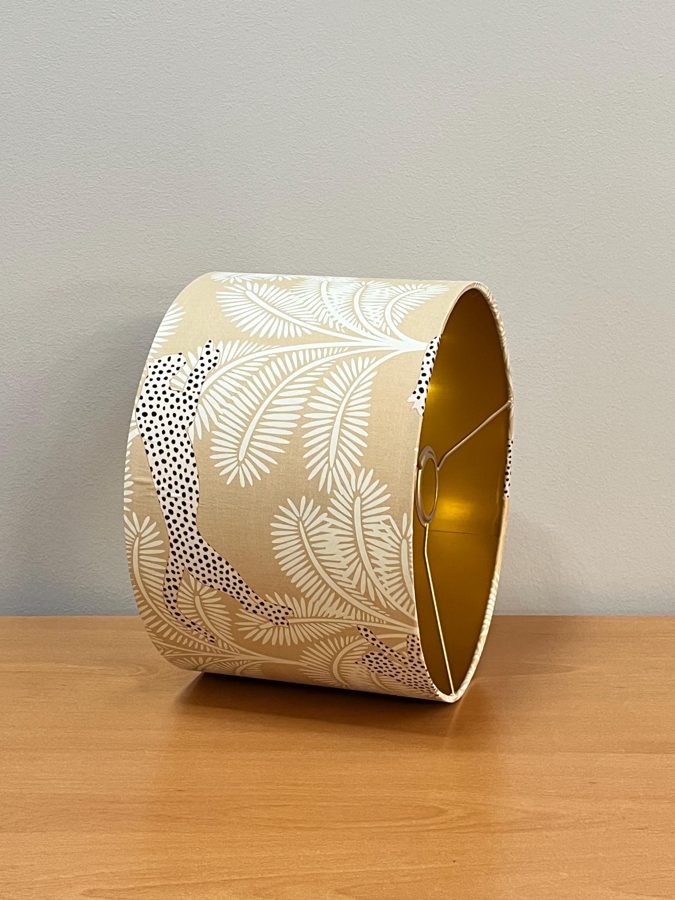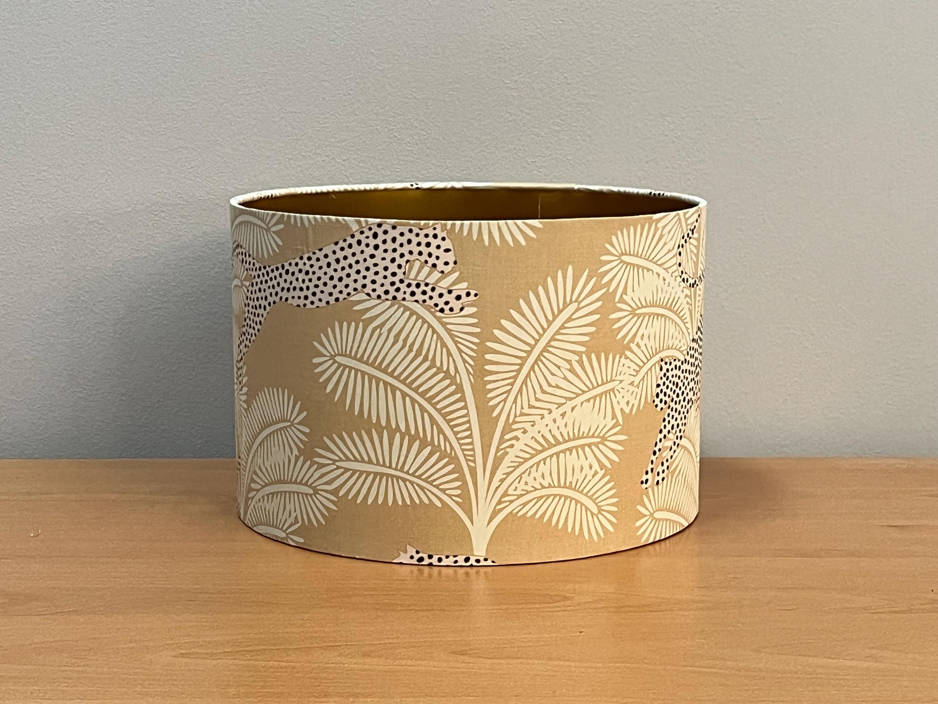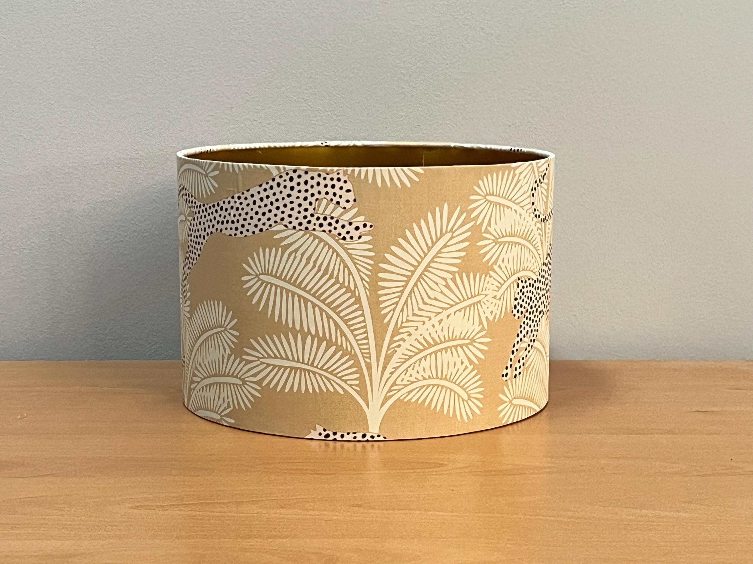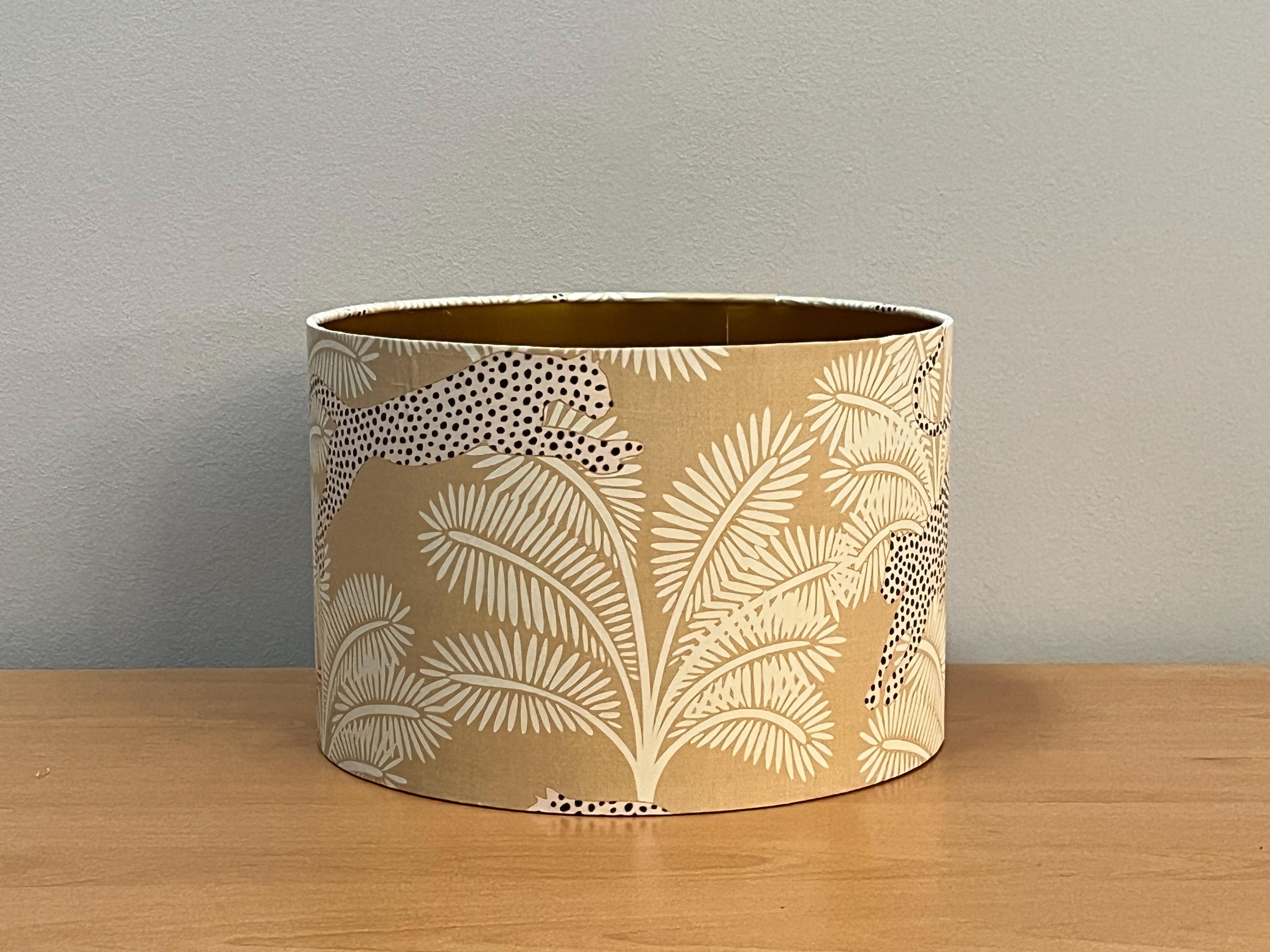 Illuminate your space with our stunning gold-colored lampshade! Adorned with exquisite beige palm trees and a striking panther design, this unique piece effortlessly blends elegance and style. Perfect for adding a touch of exotic flair to any room, this lampshade is ideal for your living room, bedroom, or office. Made with high-quality materials, it not only enhances your decor but also provides warm, inviting light. Upgrade your home decor with this eye-catching accent piece today!