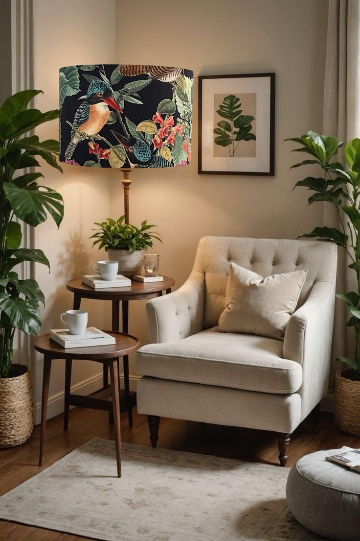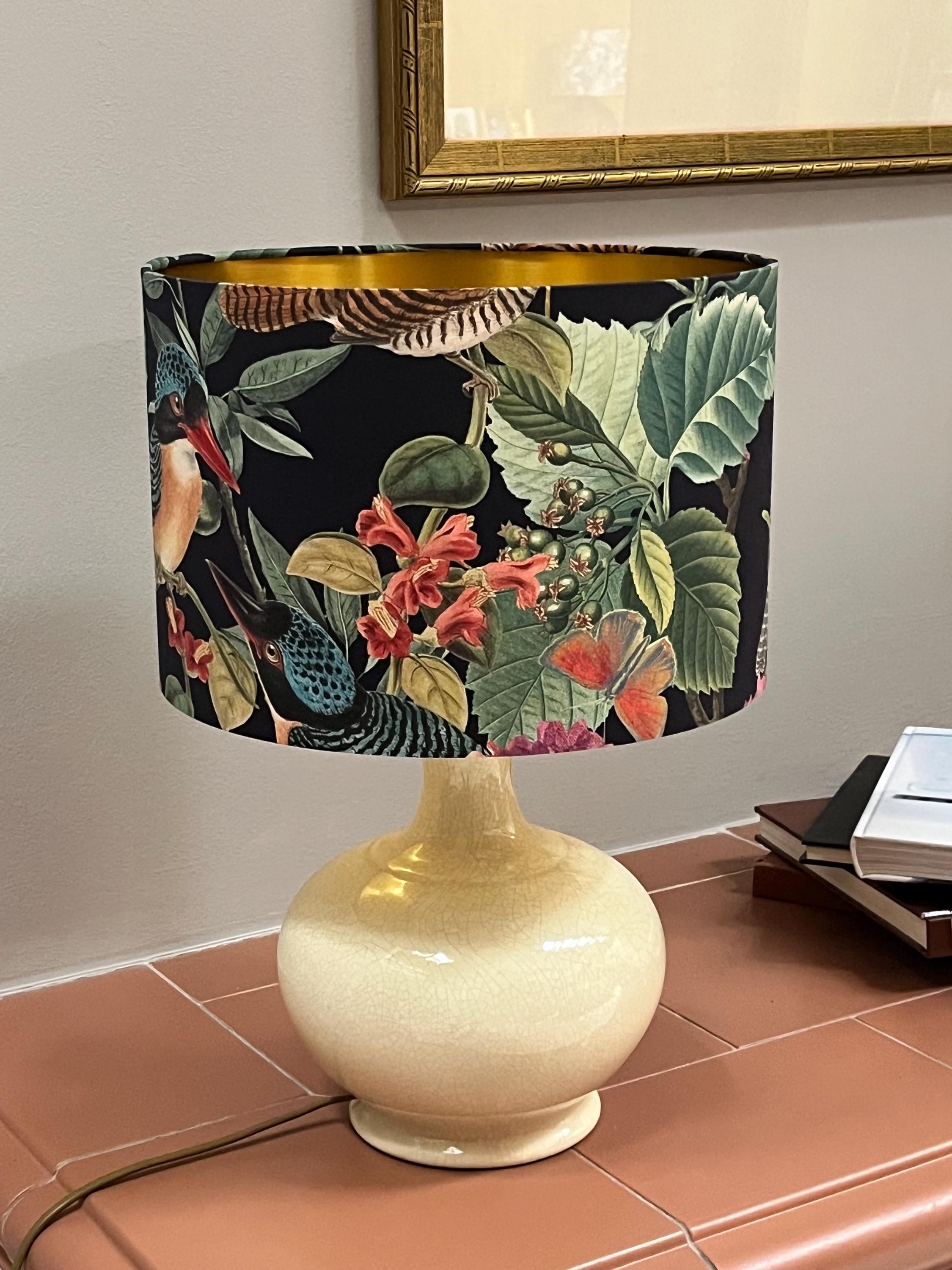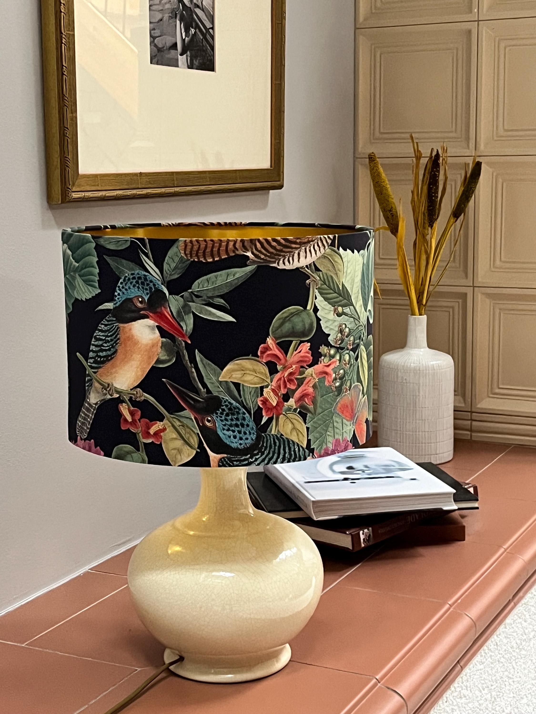Illuminate your space with our stunning lampshade featuring a striking black background adorned with beautiful Victorian birds. This elegant design adds a touch of vintage charm to any room, making it perfect for both modern and classic decor. Crafted with quality materials, the shade enhances your favorite lamp, casting a soft, inviting glow. Elevate your home decor with this unique piece that embodies sophistication and artistry. Perfect for bird lovers and Victorian enthusiasts alike!