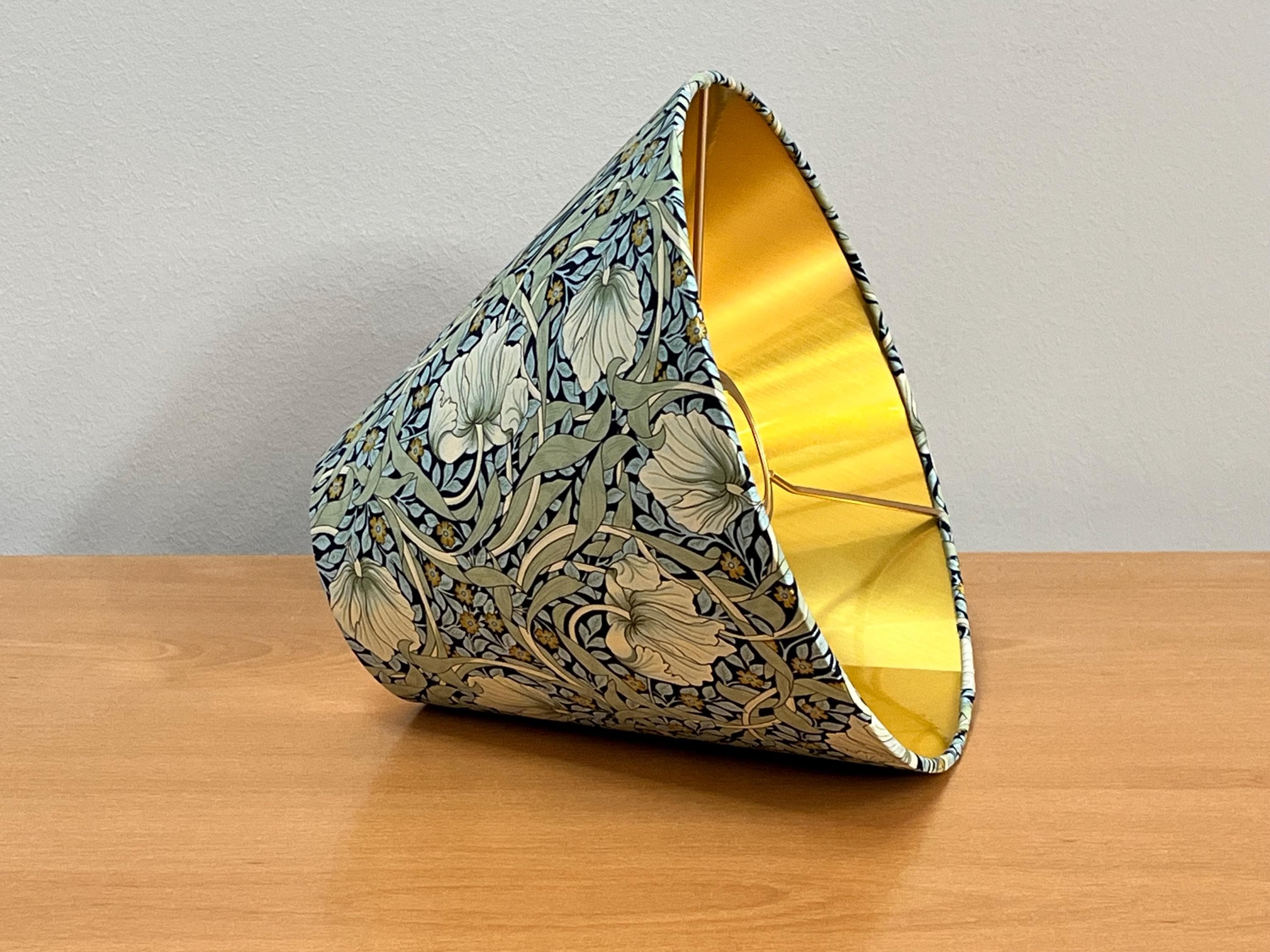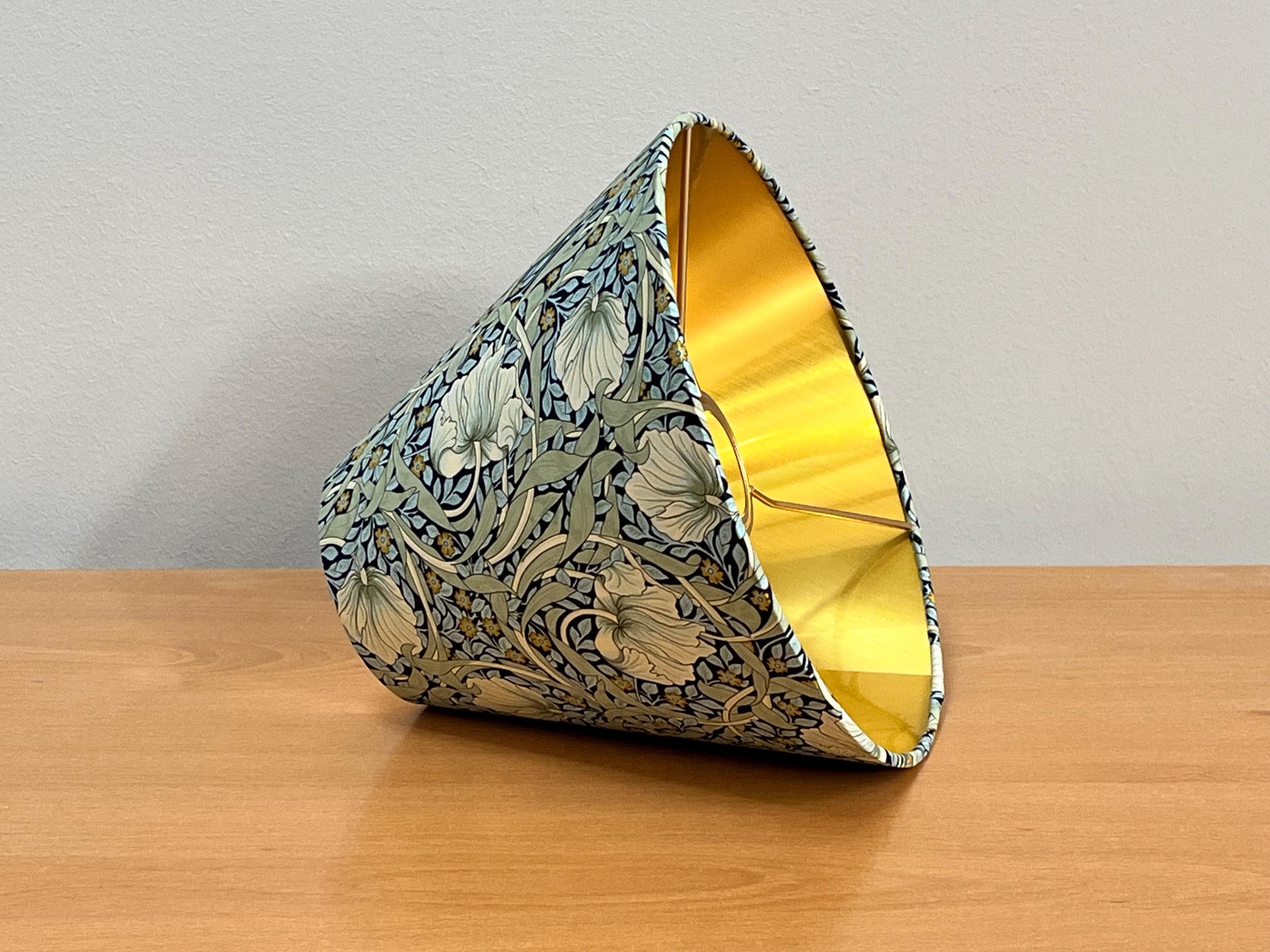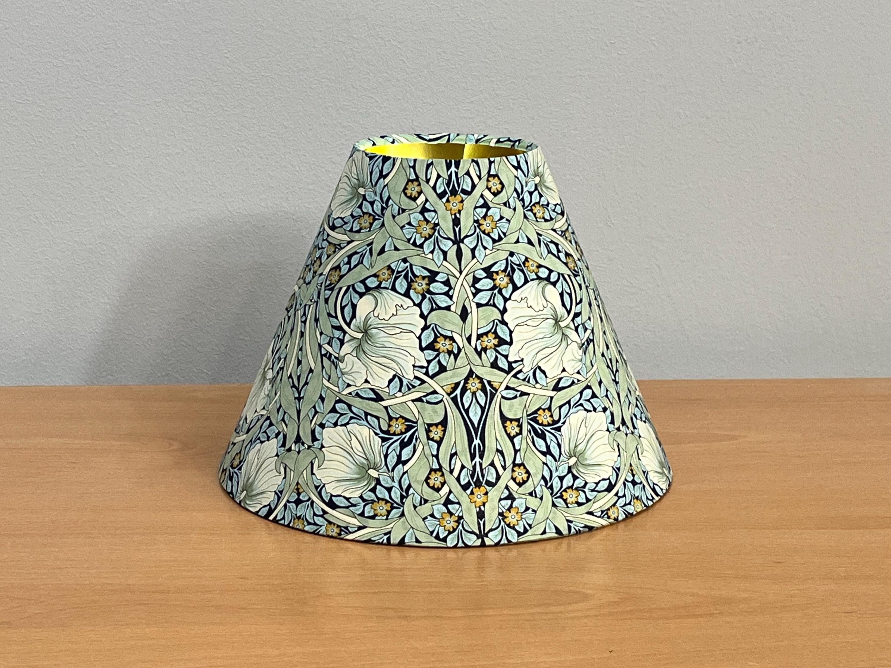 Illuminate your space with elegance using our William Morris Styled Pimpernel Gold-Lined Empire Lampshade. This exquisite piece features a stunning pimpernel floral design, beautifully complemented by a luxurious gold lining that adds warmth and sophistication to any room. Perfect for modern and vintage interiors alike, it enhances your lamp while creating a cozy ambiance. Transform your living space today with this unique lampshade that celebrates timeless artistry!