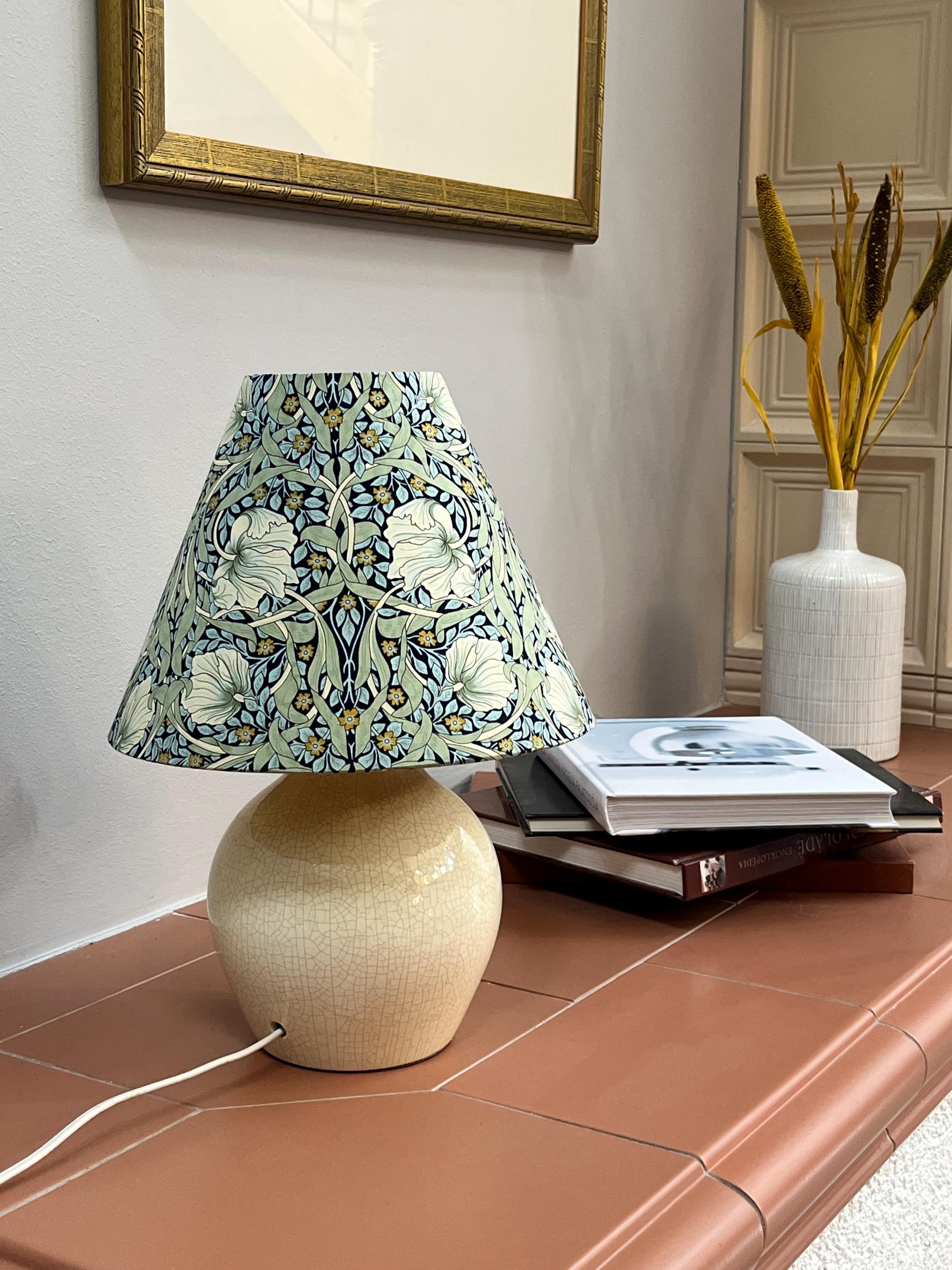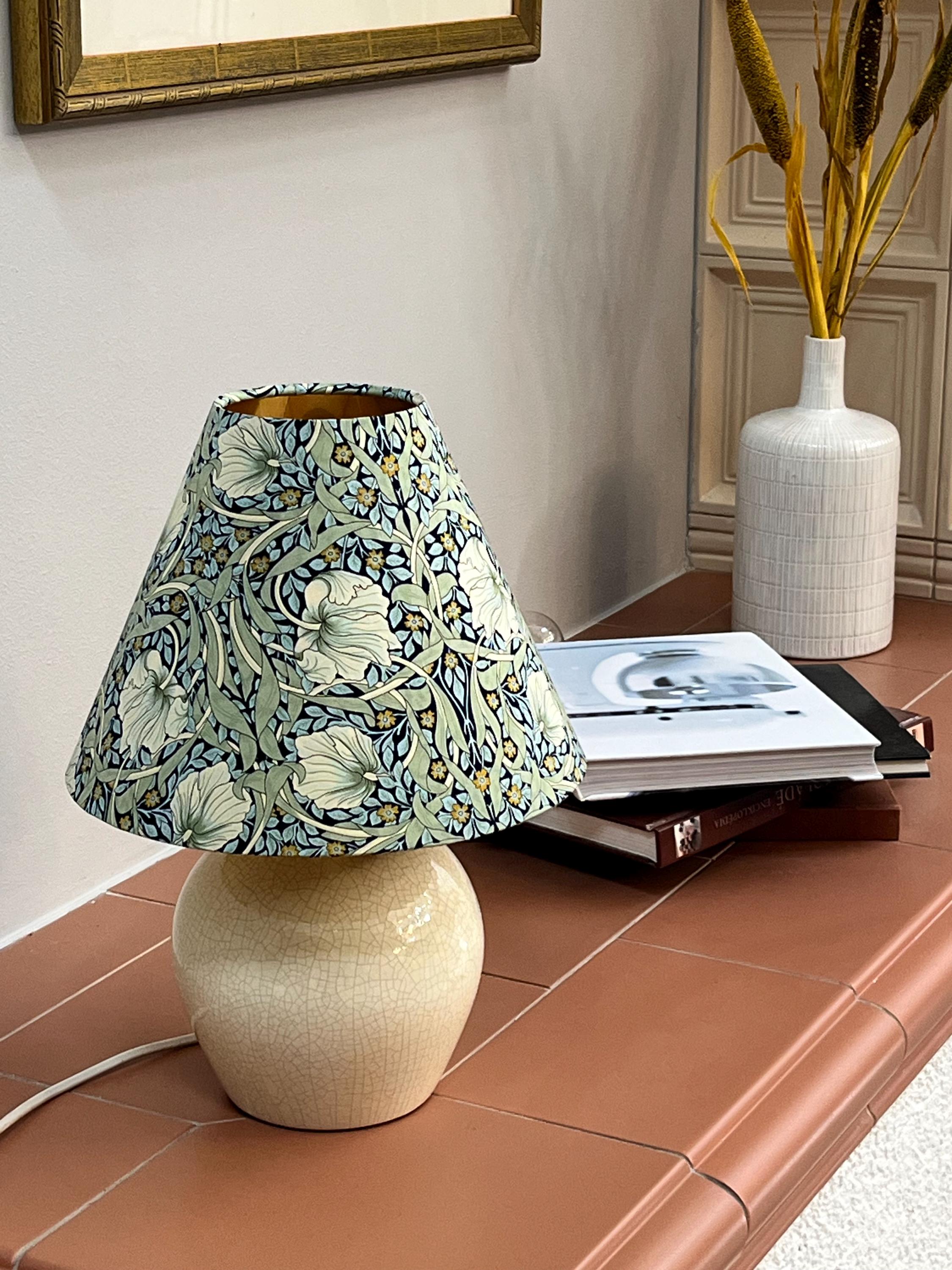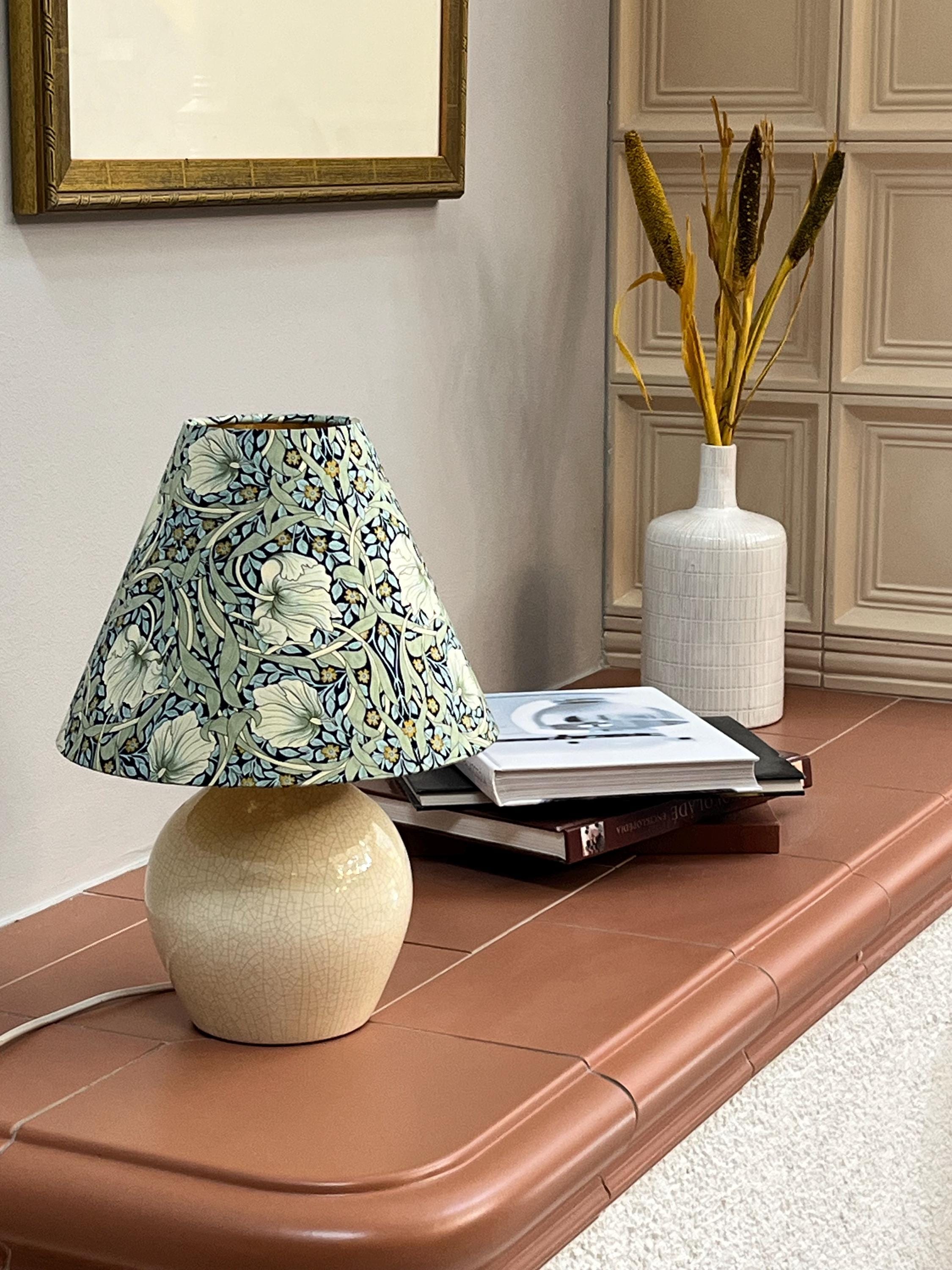 Illuminate your space with elegance using our William Morris Styled Pimpernel Gold-Lined Empire Lampshade. This exquisite piece features a stunning pimpernel floral design, beautifully complemented by a luxurious gold lining that adds warmth and sophistication to any room. Perfect for modern and vintage interiors alike, it enhances your lamp while creating a cozy ambiance. Transform your living space today with this unique lampshade that celebrates timeless artistry!