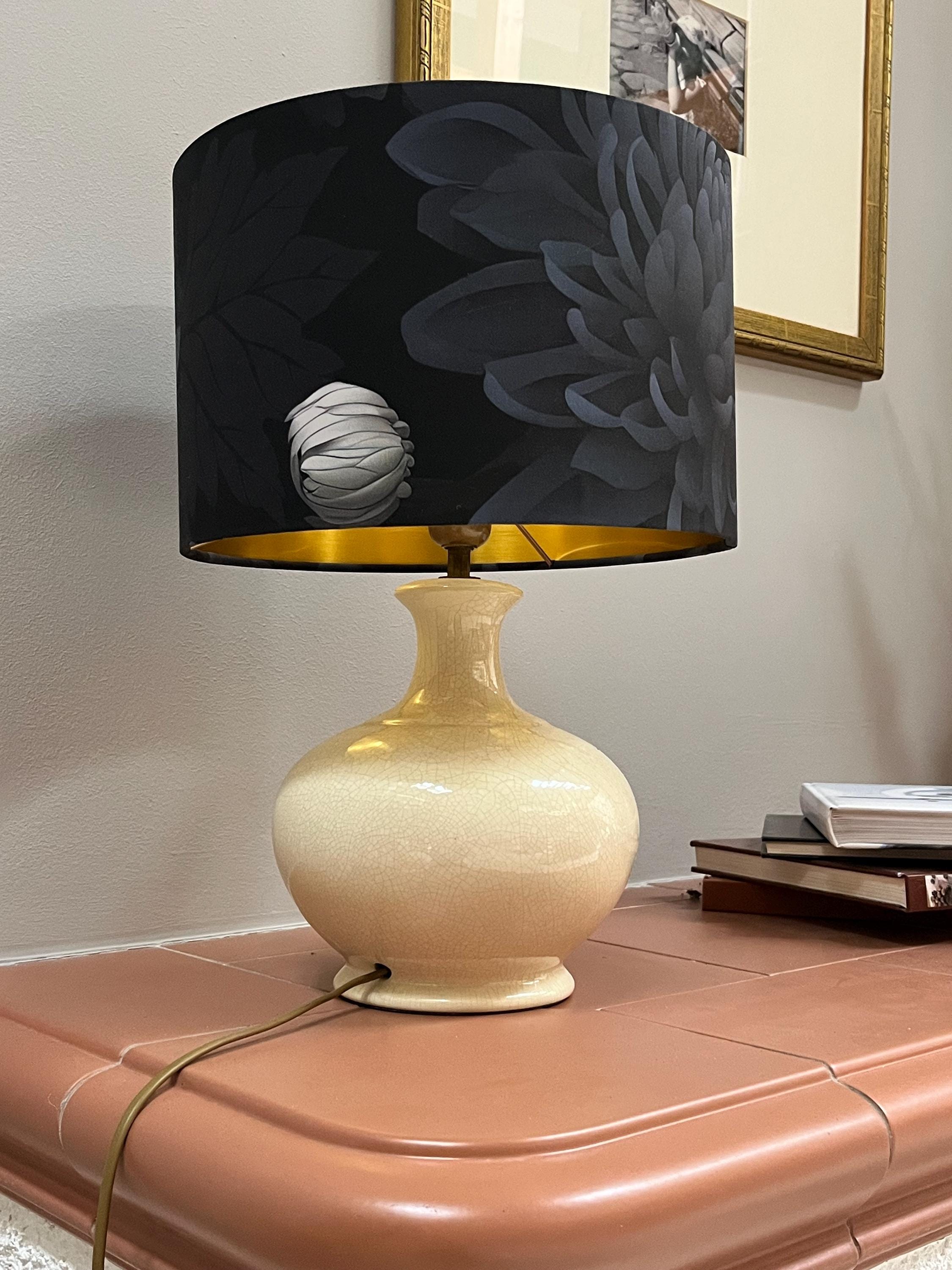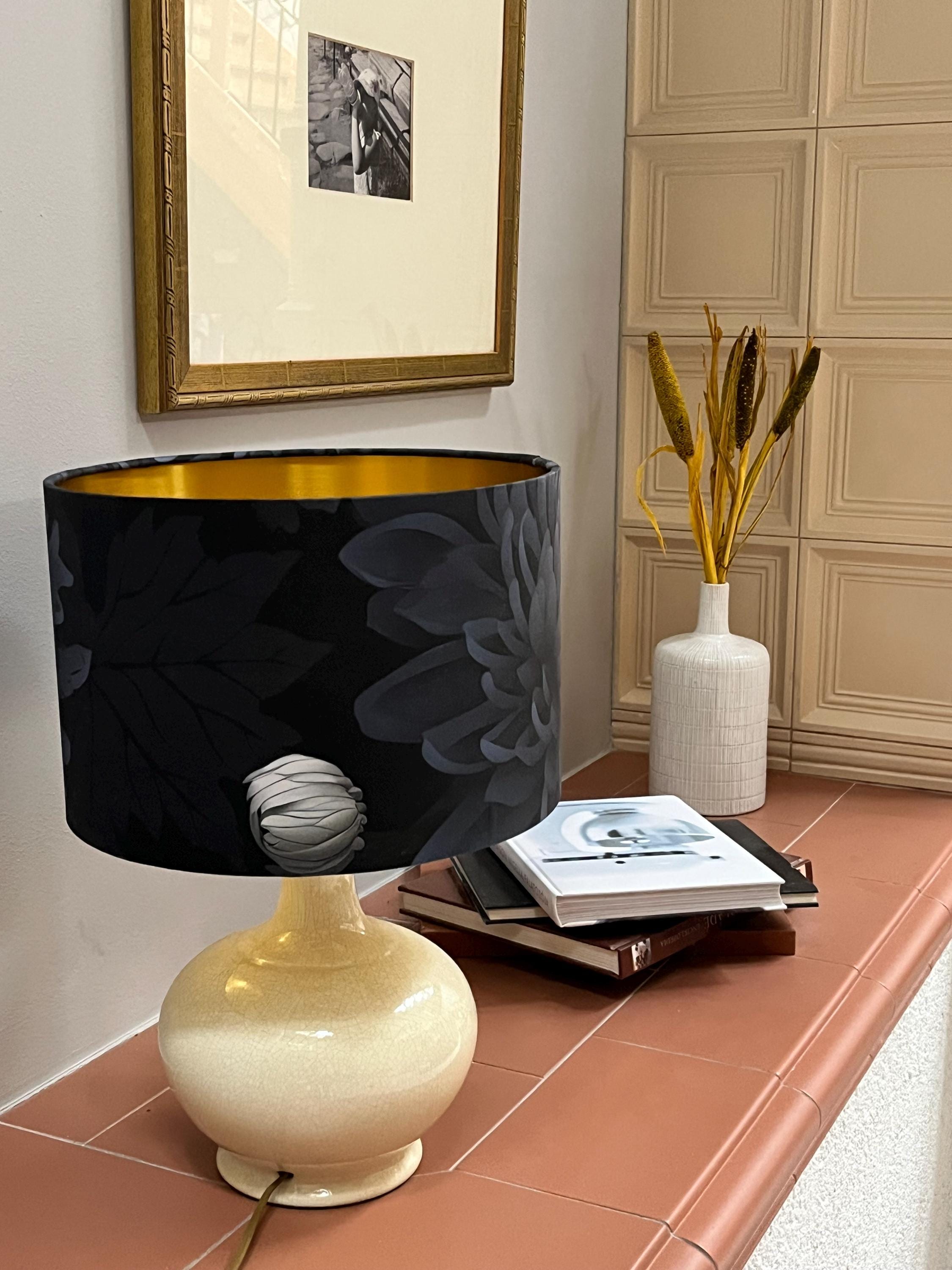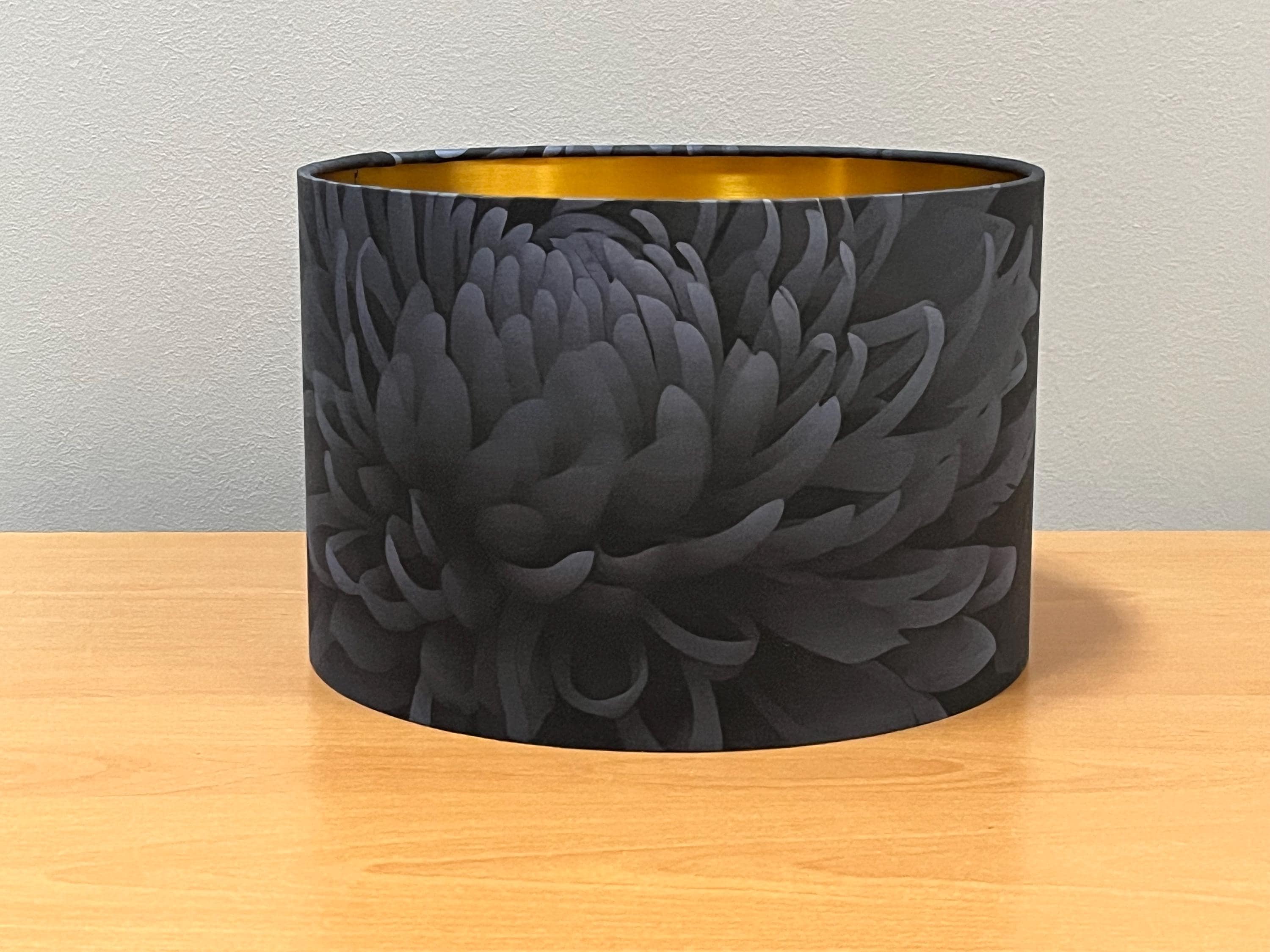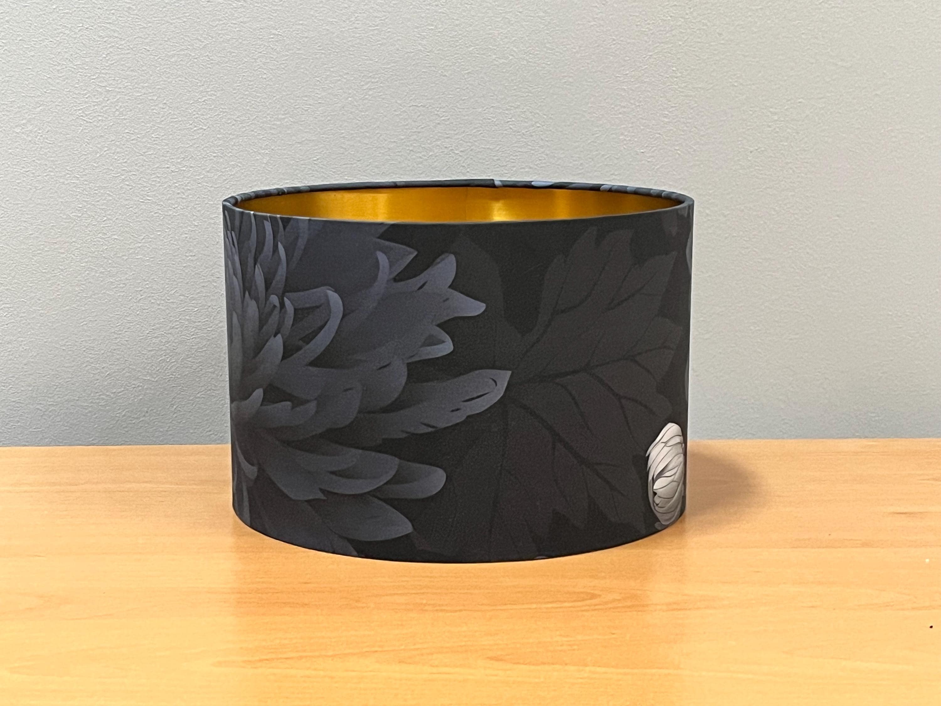 Illuminate your space with our classic lampshade featuring a stunning chrysanthemum design on a sleek black background. The elegant gold interior enhances the warm glow of your light, making it perfect for any room. This uniquely designed lampshade is not just a light fixture; it's a style statement that adds a touch of sophistication to your decor. Ideal for living rooms, bedrooms, or cozy nooks, it blends beautifully with various themes. Upgrade your lighting with this timeless piece today!