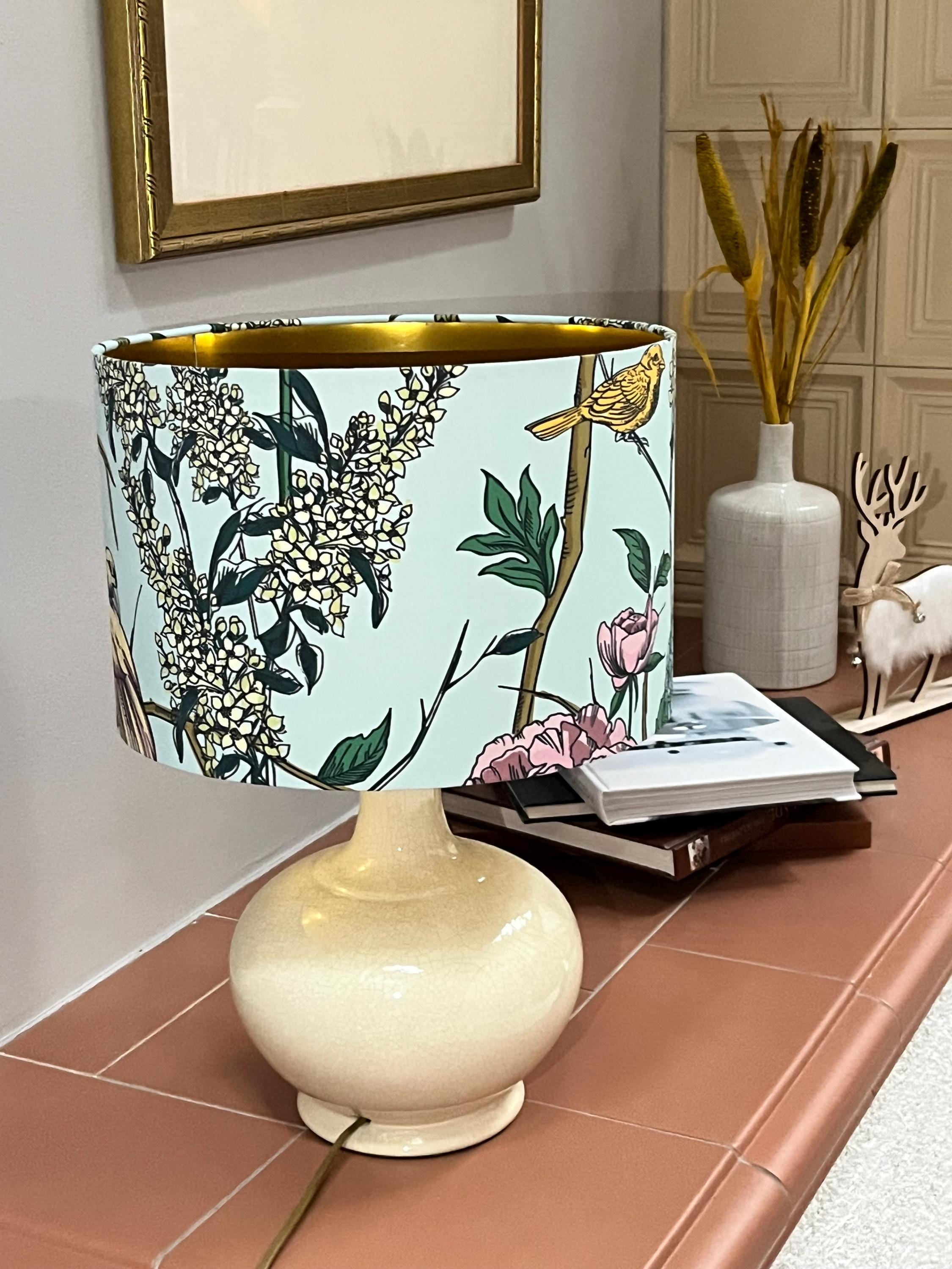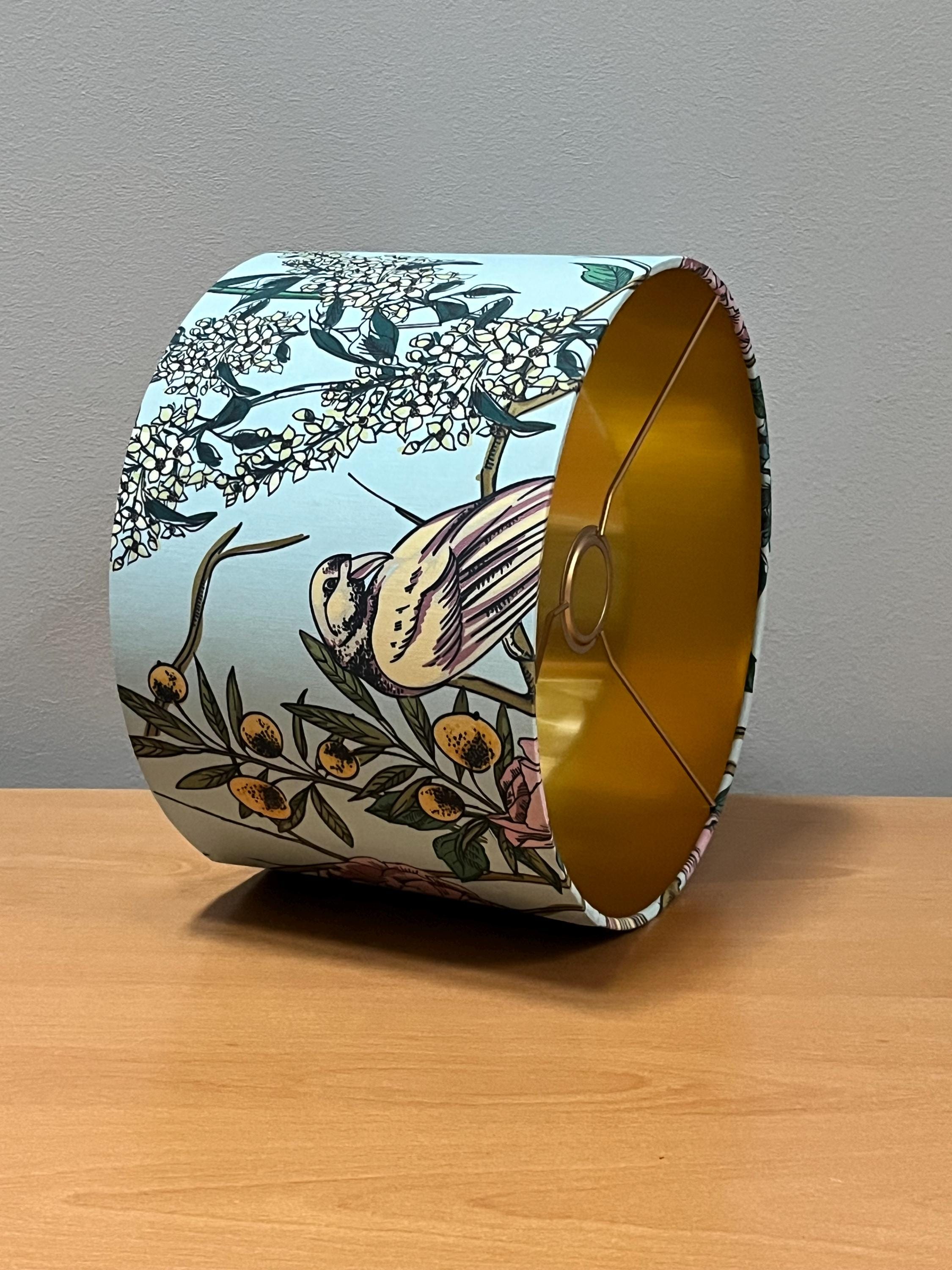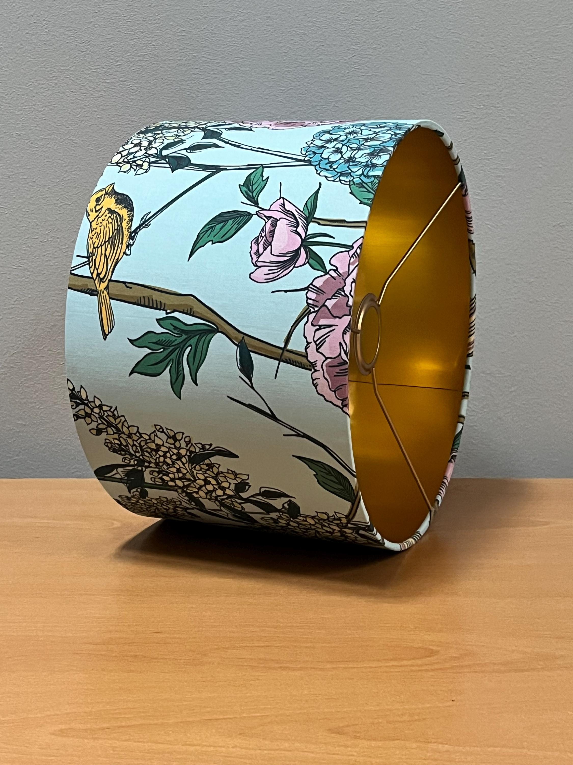 Illuminate your space with elegance! This stunning lampshade features a Victorian Golden Pheasant Garden design on a soft light blue background, perfectly complemented by luxurious gold lining. Ideal for adding a touch of vintage charm to your home decor, this lampshade seamlessly enhances any room’s ambiance. Crafted with quality materials, it fits most standard lamp bases. Transform your lighting with this exquisite accessory! Don’t miss out on this unique piece!