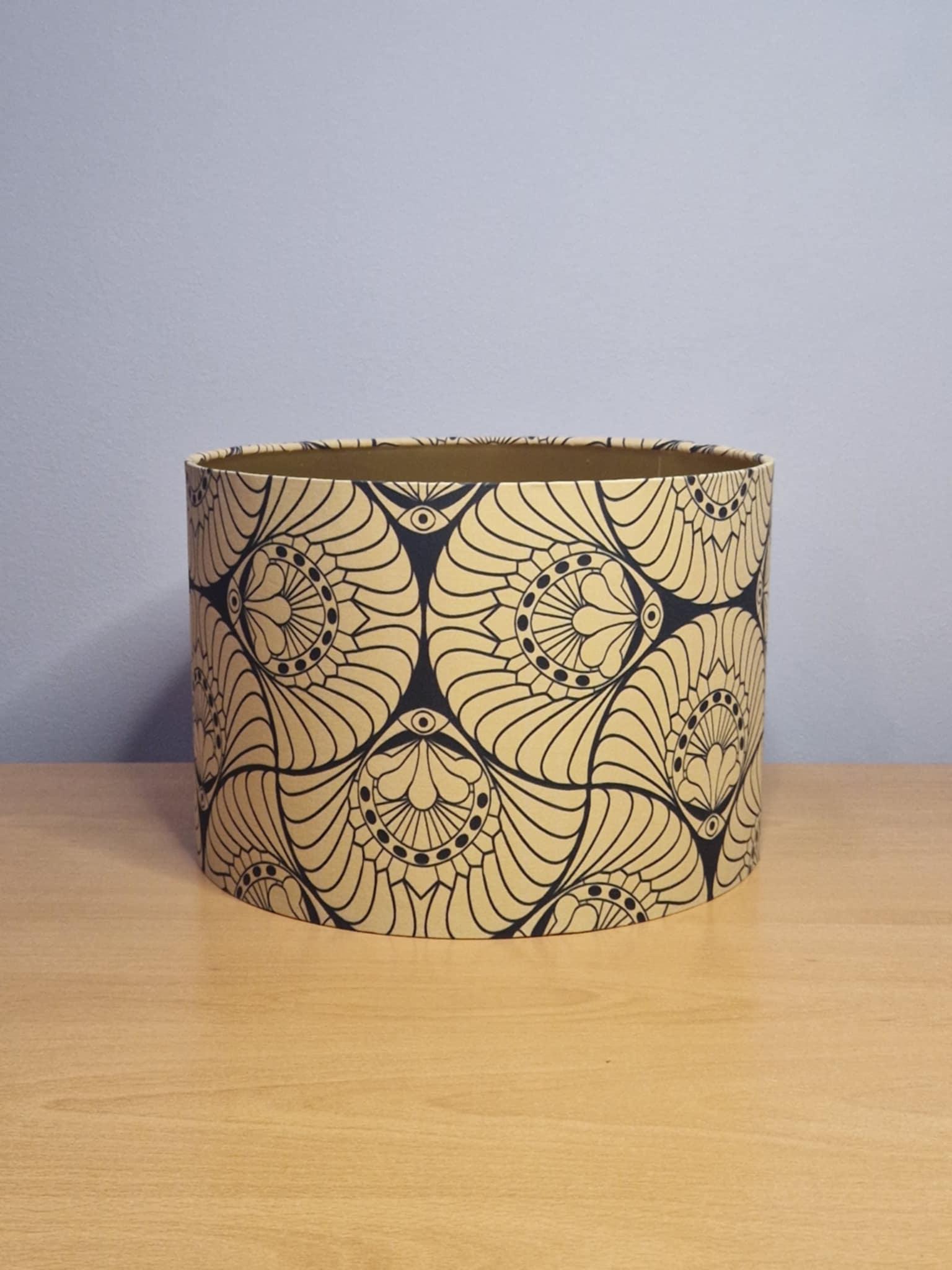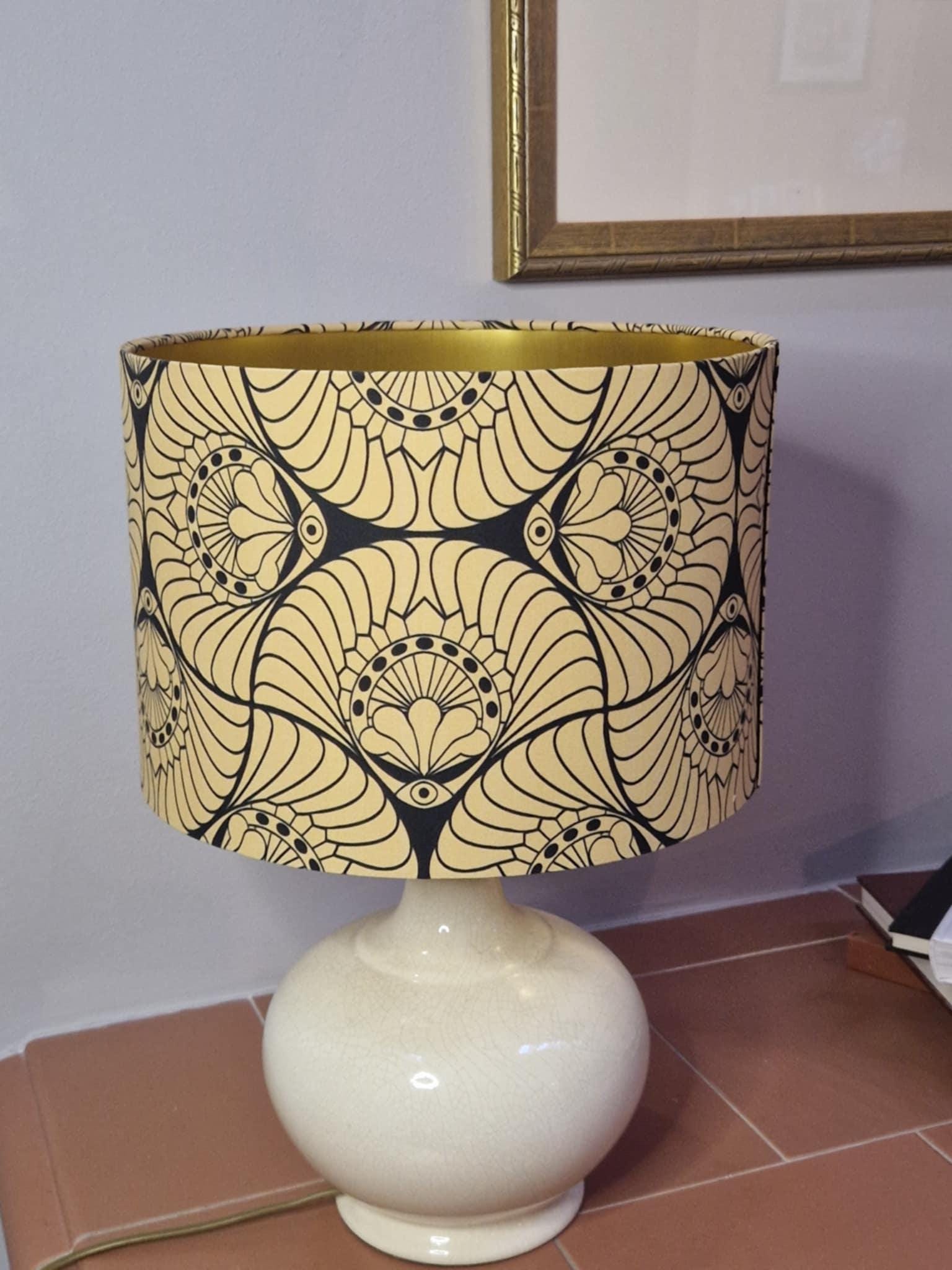 Illuminate your space with our stunning Art Deco Lampshade, featuring a Cosmic Eye design that exudes vintage glamour. Crafted in warm gold tones, this piece not only lights up your room but also adds a touch of elegance to any decor. The gold-lined edges enhance its luxurious appeal, making it a perfect statement piece for your home. Transform your lighting with this unique lampshade that seamlessly blends sophistication and charm. Perfect for anyone seeking a touch of Art Deco flair!