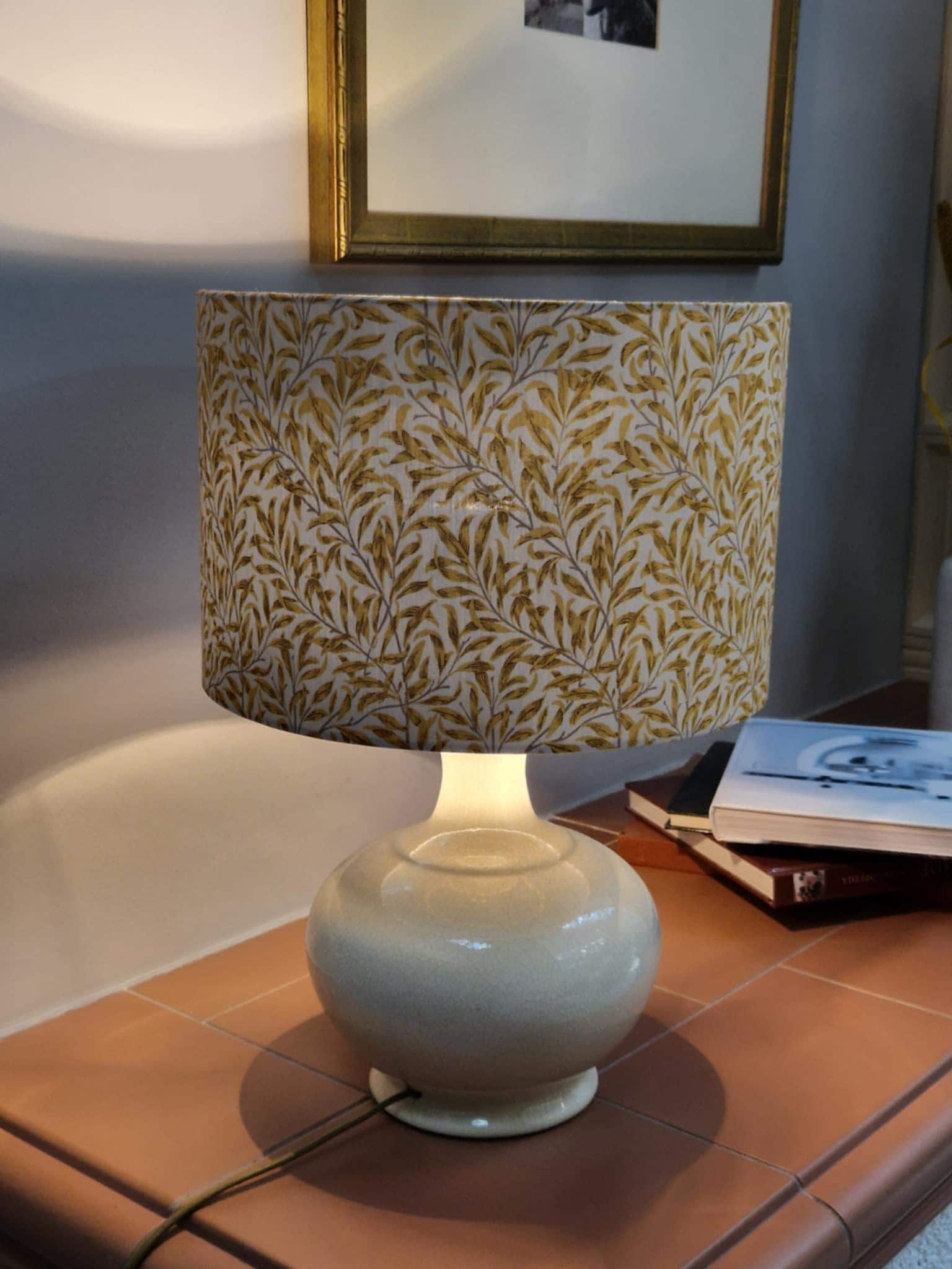 Add a touch of elegant charm to your space with this handmade lampshade inspired by the timeless William Morris style. Featuring a luxurious Willow brough pattern, this lampshade will enhance any room with its intricate design. Illuminate your home in style with this unique piece!