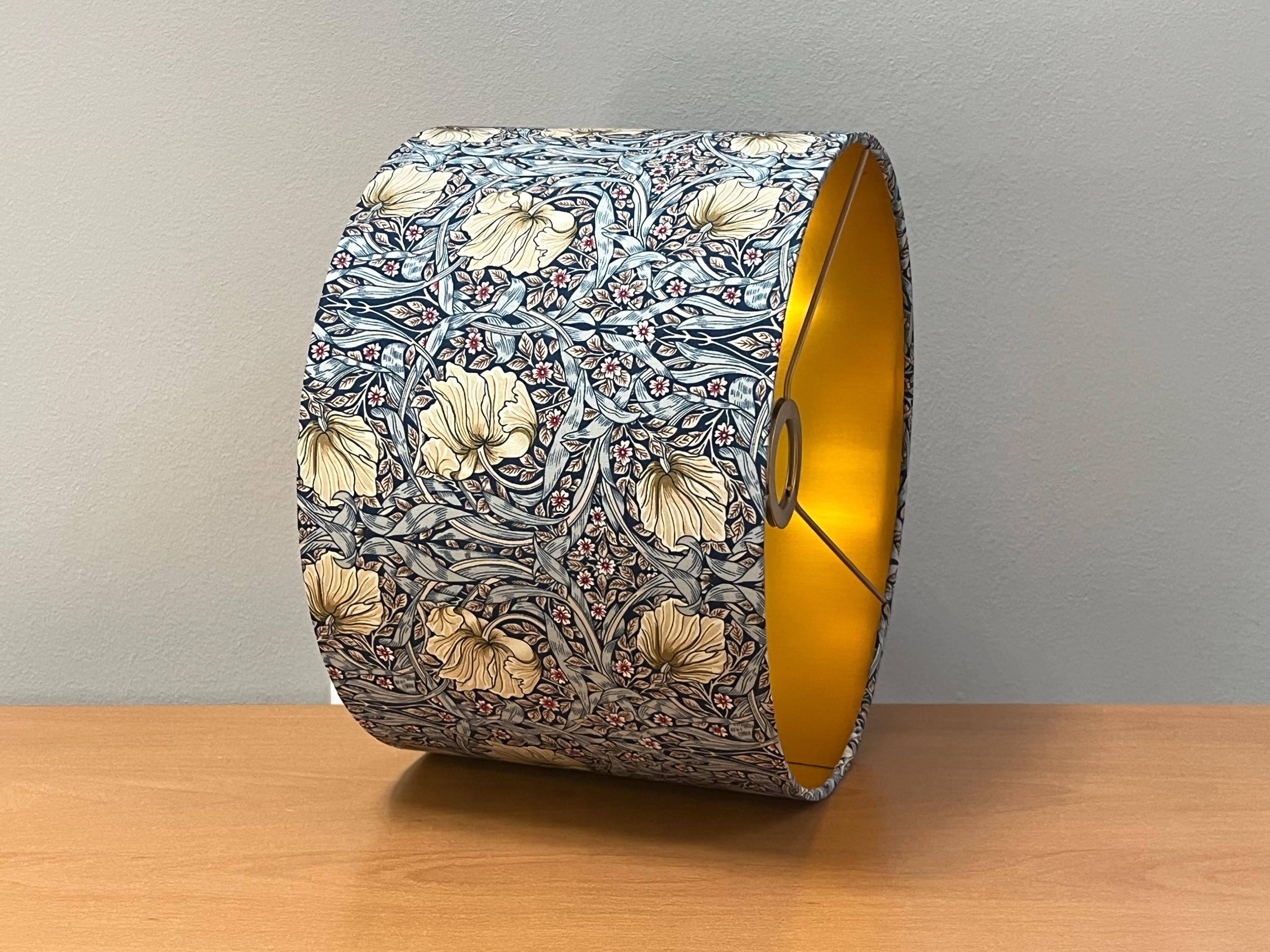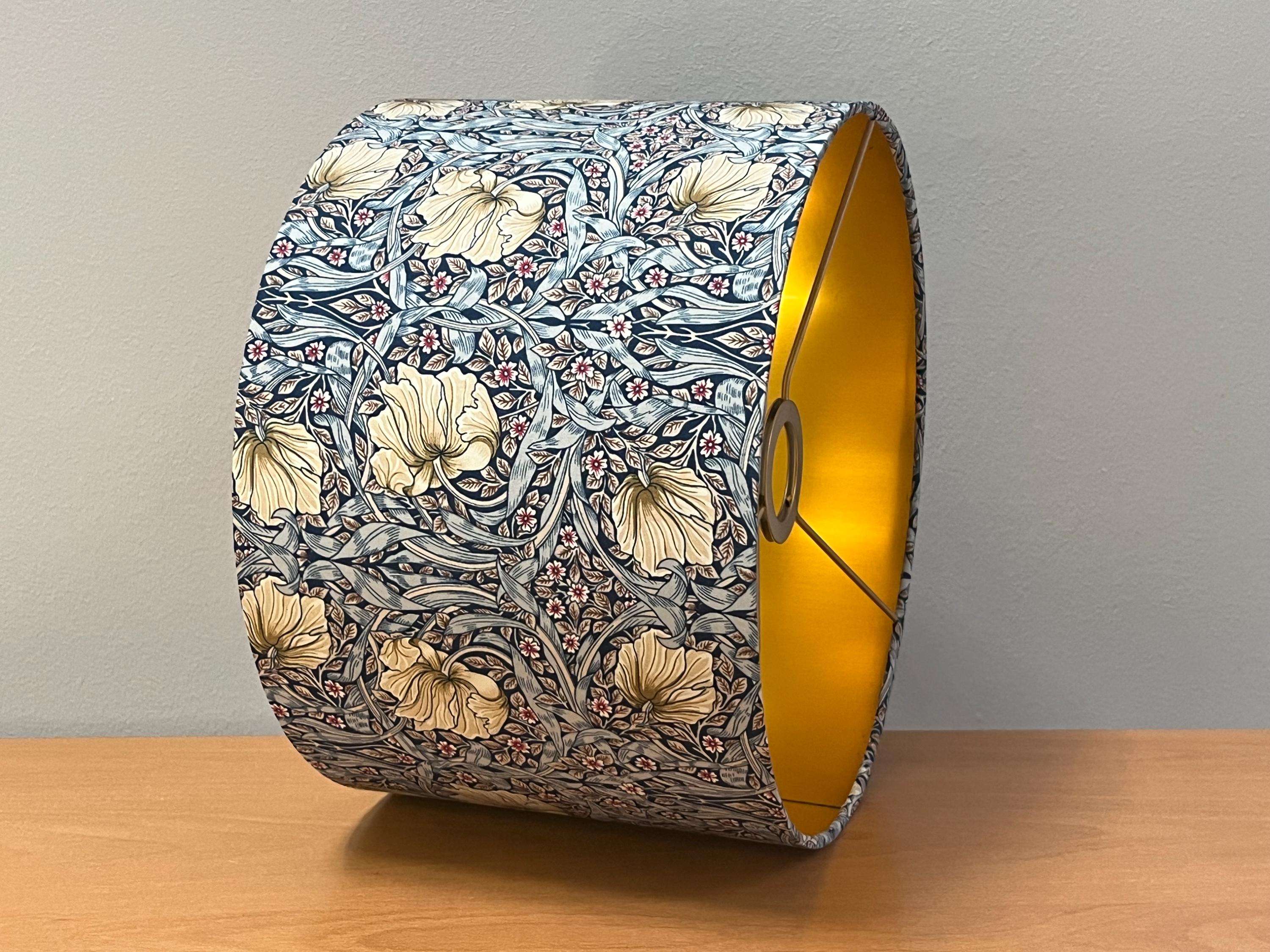 Discover the elegance of our William Morris Blue Pimpernel lampshade, featuring a stunning silk effect and gold foil interior. This beautiful lampshade will add a touch of sophistication to any home. Perfect as a gift, it embodies timeless beauty and artistry. Enhance your home with this unique blue floral lampshade that celebrates the intricate craftsmanship of William Morris. Ideal for art lovers and home decorators alike!