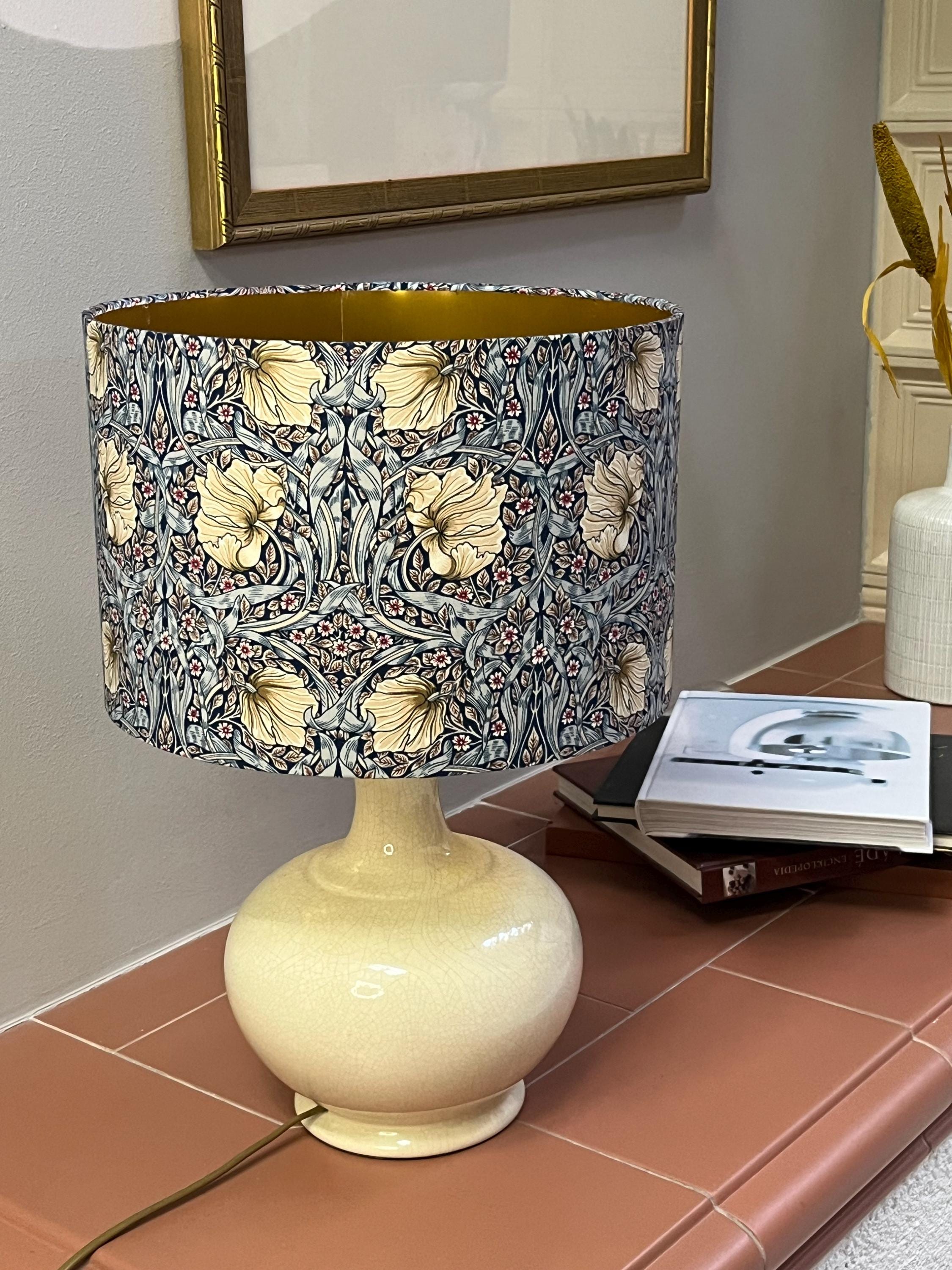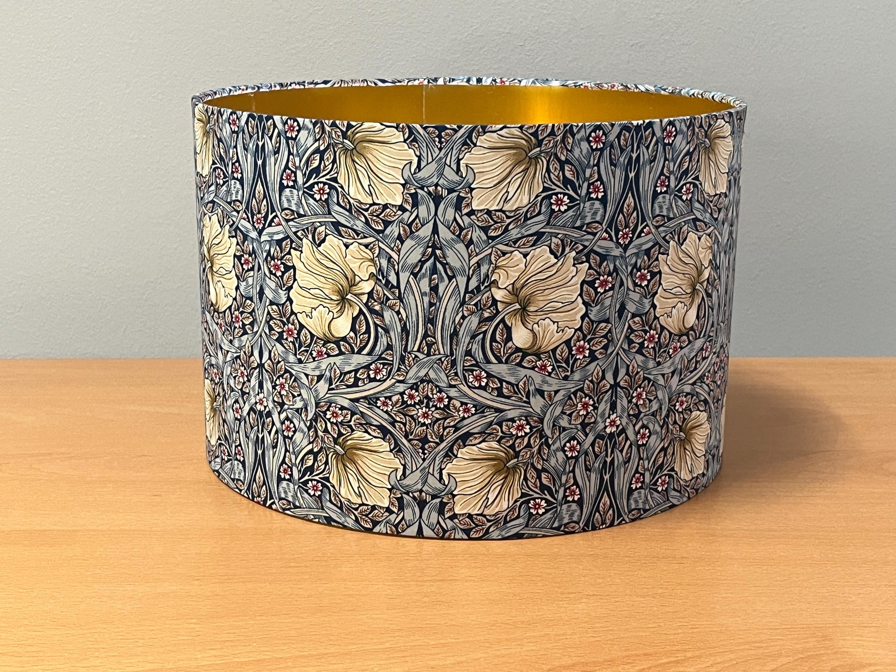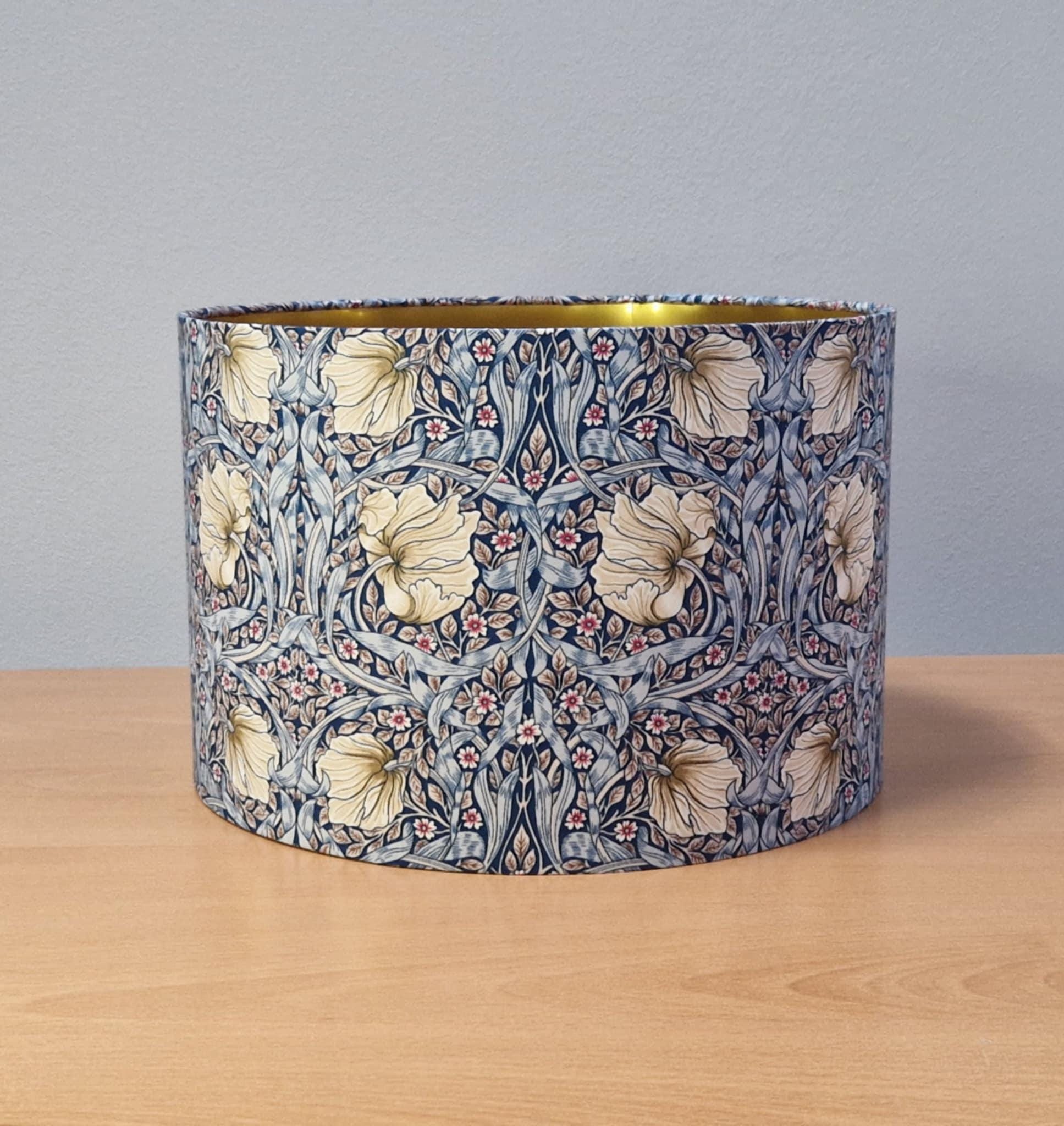 Add a touch of elegant charm to your space with this handmade lampshade inspired by the timeless William Morris style. Featuring a luxurious Pimpernel blue pattern, this lampshade will enhance any room with its intricate design. Illuminate your home in style with this unique piece!