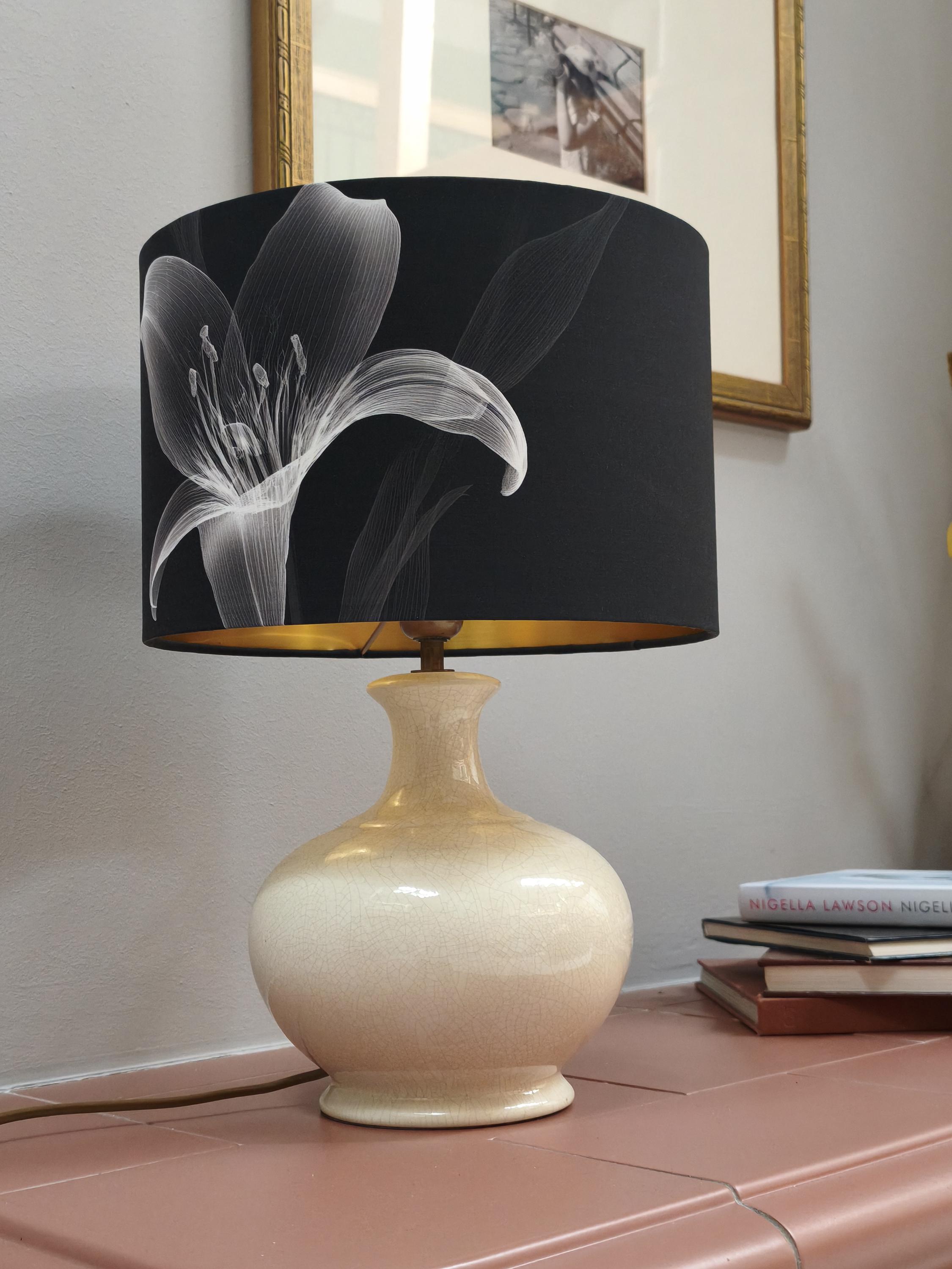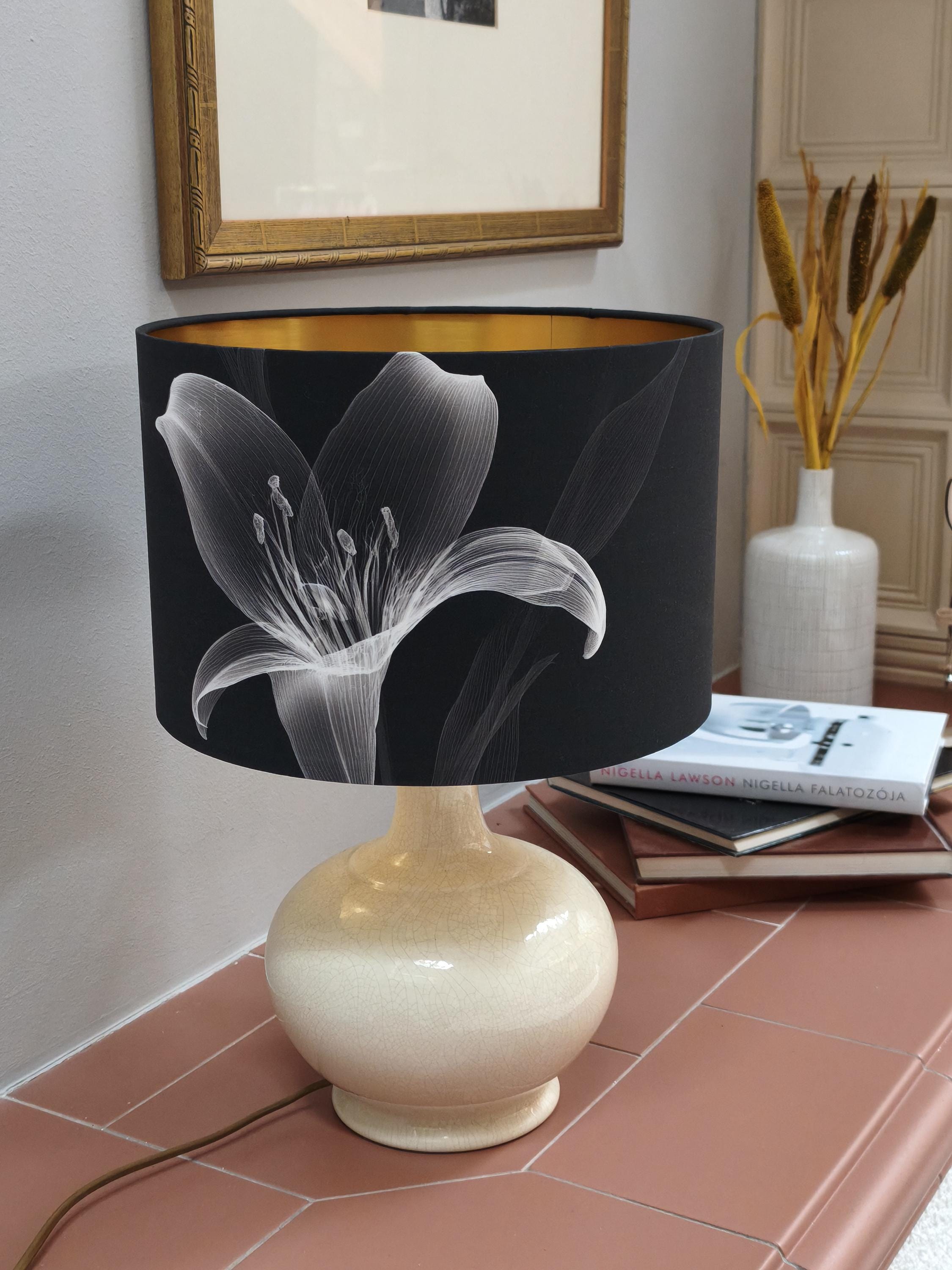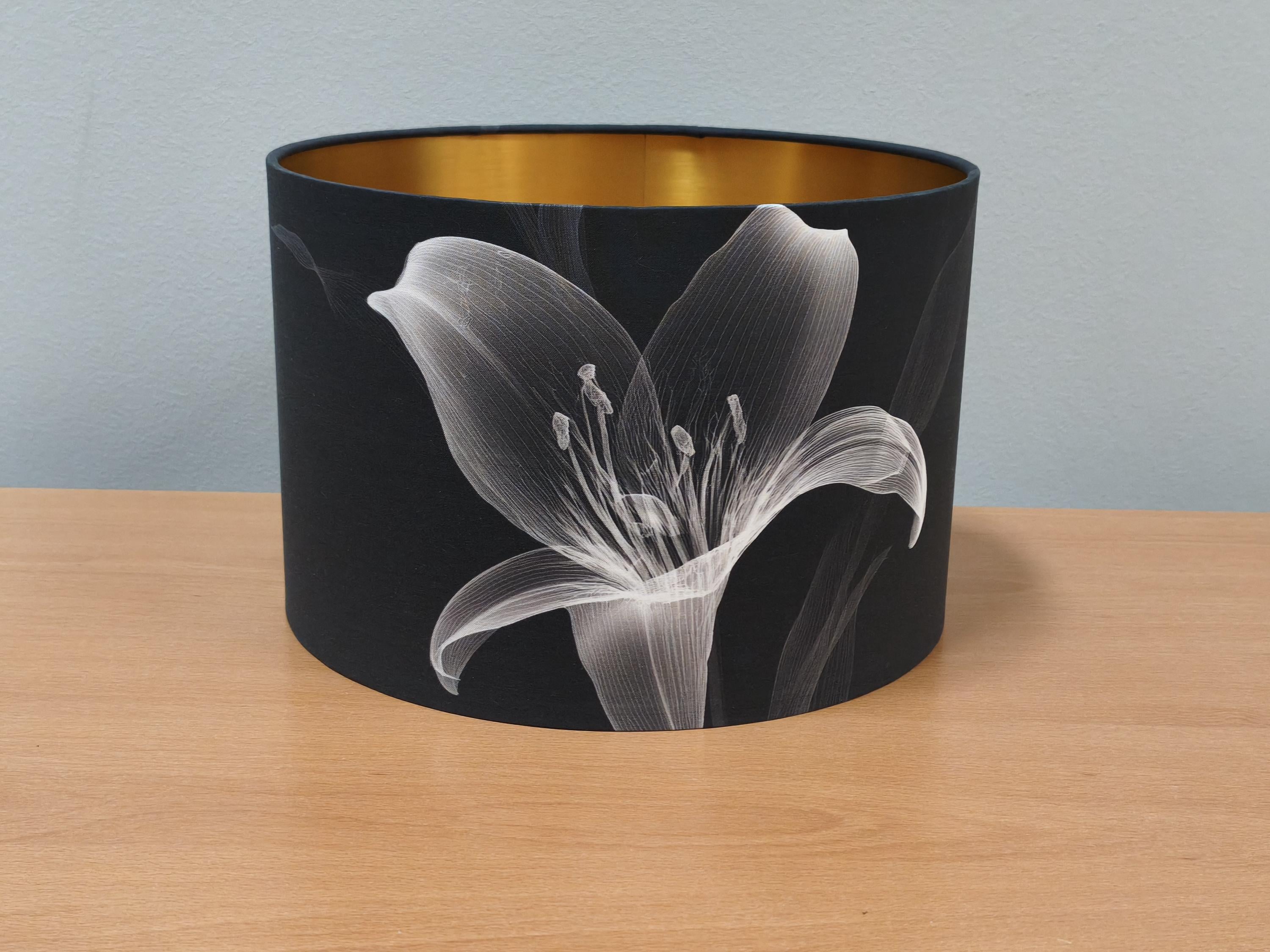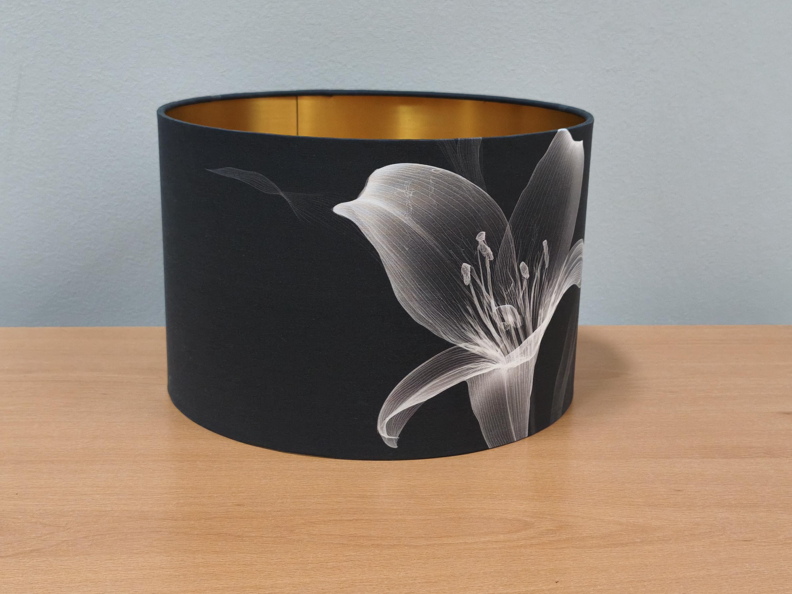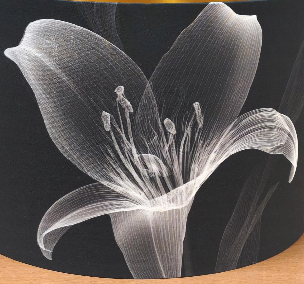 Illuminate your space with our stunning lampshade featuring beautiful white lilies on a sleek black background. This elegant design adds a touch of sophistication to any room, blending seamlessly with various decor styles. Perfect for creating a serene ambiance, this lampshade is not just a lighting solution but a work of art. Whether it's for your living room, bedroom, or office, this piece will brighten your environment and make a statement. Easy to install and maintain, it's a must-have for any home!