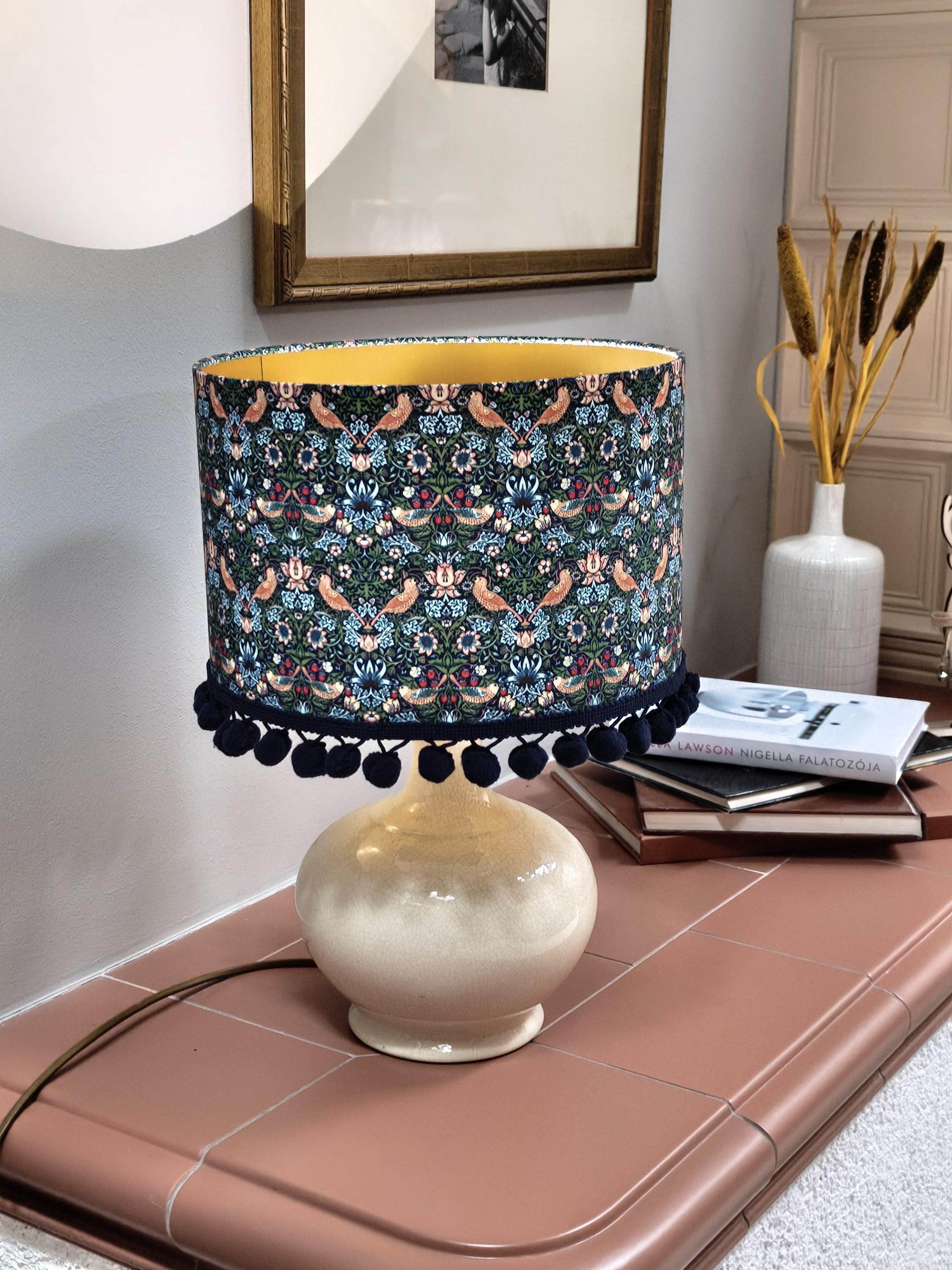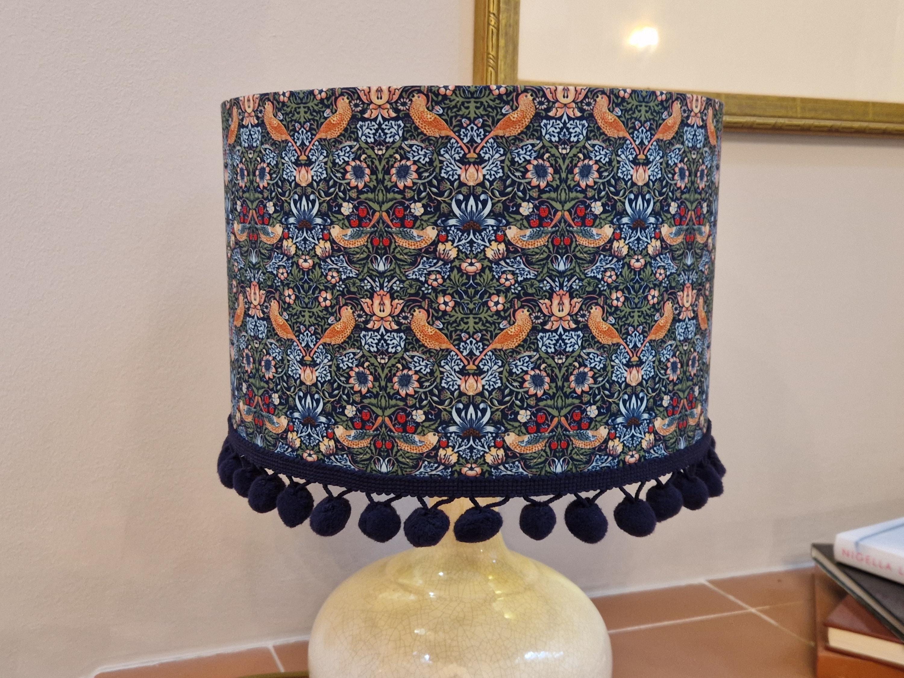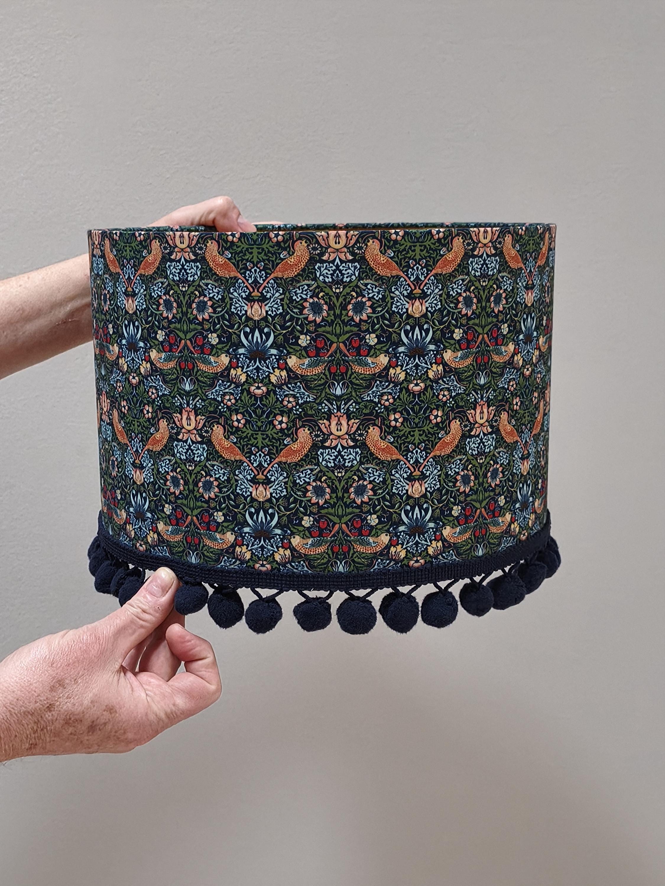 Elevate your space with our Handmade Gold Lined Lampshade featuring the iconic William Morris Strawberry Thief Design and pom-poms. This exquisite piece combines art and functionality, adding a touch of vintage elegance to any room. Crafted with care, the gold lining enhances the warm glow of your light, creating a cozy ambiance. Perfect for living rooms, bedrooms, or as a unique gift for design lovers. Illuminate your home with this stunning artisanal lampshade today!