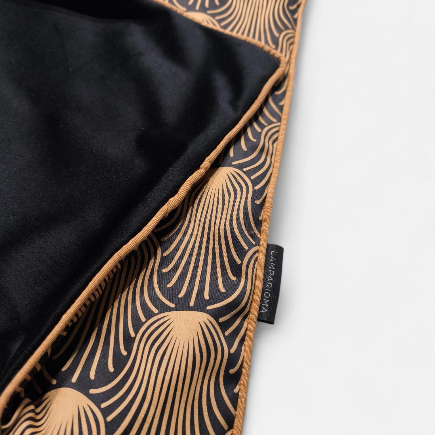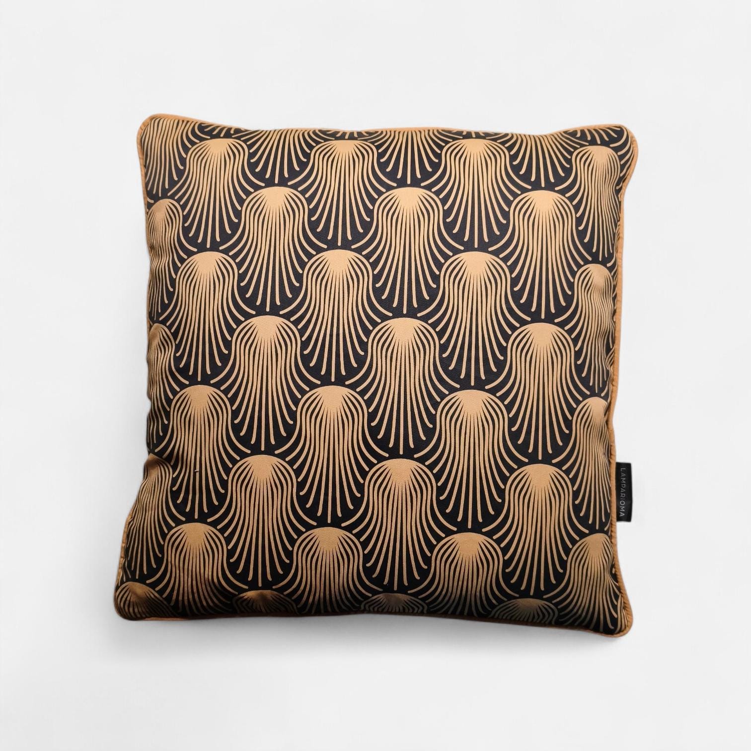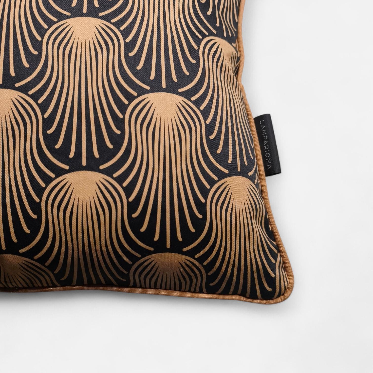 Add a touch of sophistication to your home with our Art Deco cushion cover, featuring a stunning gold piping finish and a luxurious black velvet back. This elegant home decor piece effortlessly blends style and comfort, making it a perfect addition to your living room or bedroom. Crafted with attention to detail, it's ideal for those who appreciate vintage-inspired designs. Elevate your space with this chic cushion cover today! Perfect for gifting or treating yourself.