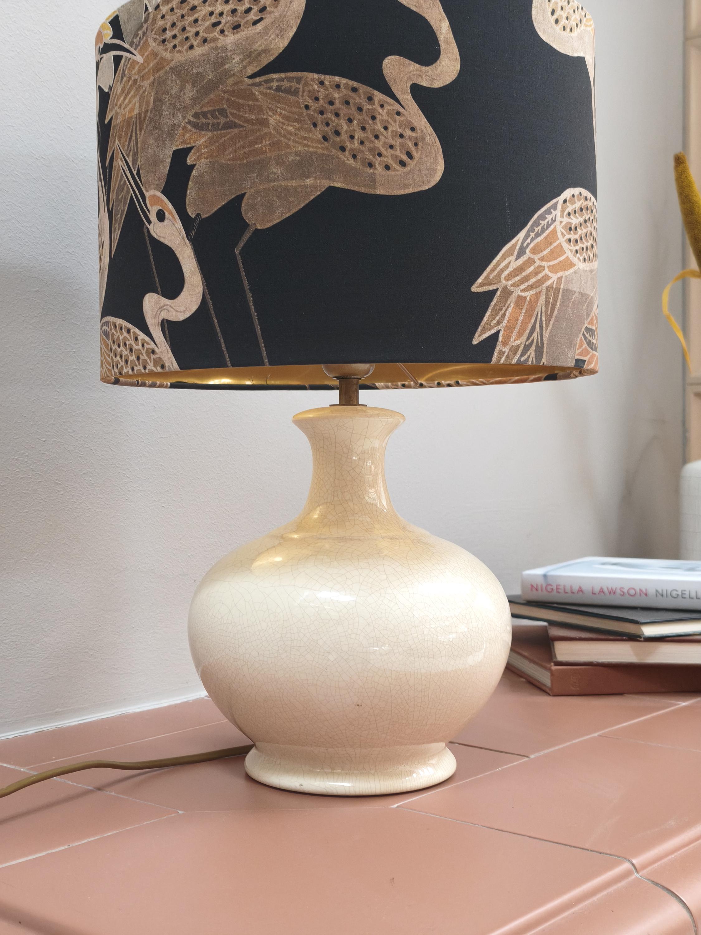 Transform your space with our stunning Wonderful Crane Birds print gold lined lampshade, elegantly designed against a striking black background. This eye-catching piece not only provides beautiful illumination but also serves as a captivating focal point in any room. The intricate crane design adds a touch of sophistication and charm to your decor. Perfect for living rooms, bedrooms, or offices, this lamp shade combines art with functionality. Illuminate your home with style today!